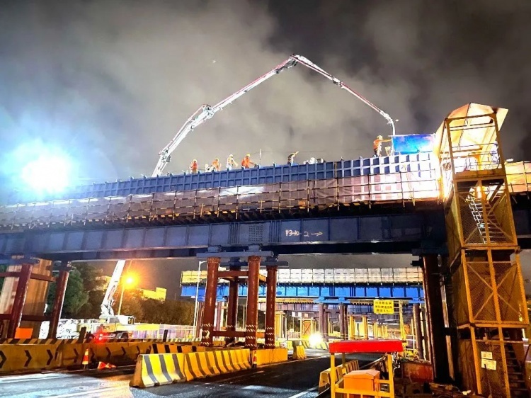 2020年上半年,沿江通道浦西段工程启动建设,工程按照“主线高架(上)+同济路(中)+富锦路(下)”三系统总体方案。在建设工程中,城投公路强化科技创新,不断提升精细化管理水平,利用预制盖梁“塔吊标准节”拼装、智能灌浆套筒等多项新技术、新工艺,克服了空间体系复杂、交通组织难度大、施工风险点多以及疫情带来的影响,合理布置施工工区,优化施工顺序,确保了各条线有序施工,现场安全。