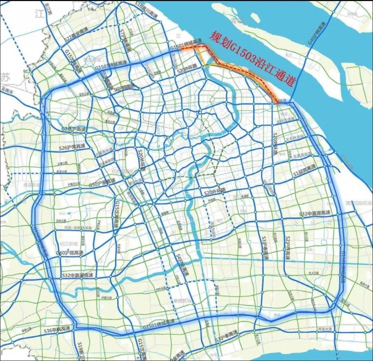 沿江通道建成后,将与同三国道、东南郊环、浦东郊环等一起完成郊环线的“〇”字型闭环,形成全长约208公里申城最长的环状高速公路,进一步完善国家高速公路网和上海市域骨干路网,提升道路通行效率,积极响应长三角一体化的国家战略。