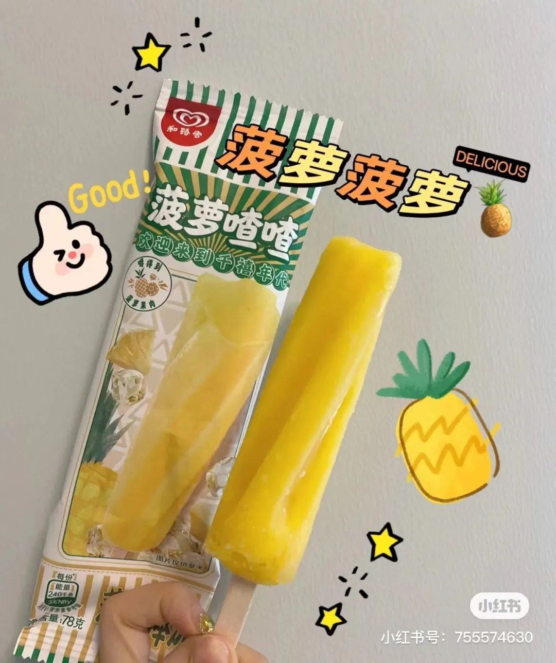这款棒冰造型独特,含有菠萝果肉,是小时候最喜欢的水果味棒冰之一。如今还能吃到,梦回童年时光。