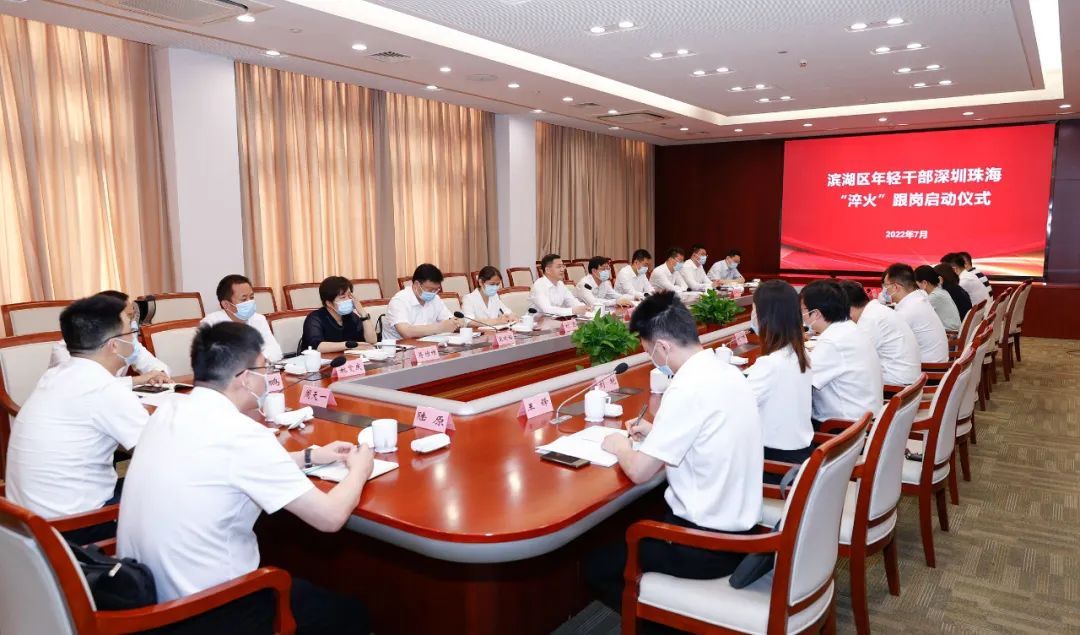 20日,滨湖区举行年轻干部深圳珠海“淬火”跟岗启动仪式。此次赴两地“淬火”的10名年轻干部将开展为期2个月的跟岗学习,共设产业规划、园区运营、双招双引、地产项目运作和文旅产业发展、孵化器管理和运营等5个方向,精心挑选的跟岗单位涉及产业园区、先进研究院及头部企业等地。