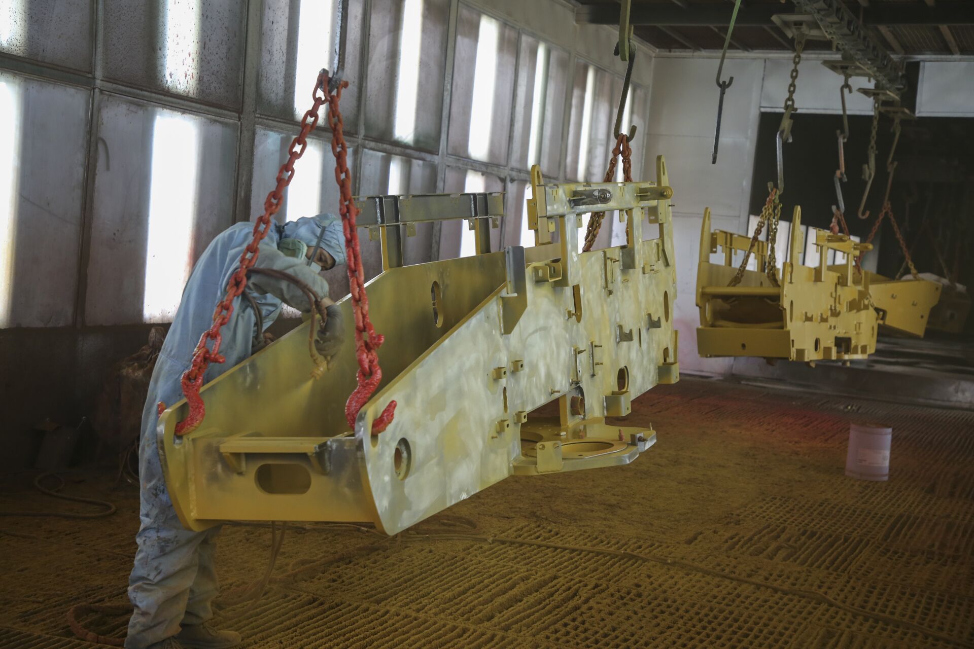 7月19日,在位于临沂市兰山区的华星机械厂车间内,工人正在进行机械部件打磨作业。华星机械为挖掘机、装载机等大型工程机械生产结构件,产品供应国内大型工程机械制造企业,部分产品出口。目前,兰山区企业在做好疫情防控前提下,开足马力生产,一派繁忙景象。兰山区以先进制造业为主轴,推进百企技改和数字化升级工程建设,企业生产高效、订单充足,实现上半年全区工业总产值较去年同期相比增长20%以上。(大众日报客户端记者 卢鹏 通讯员 孙磊 许传宝 报道)