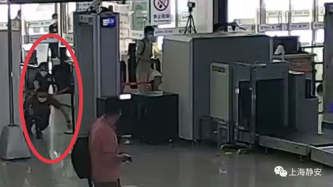 7月18日上午7点半左右,在无锡站安检口,只见这名男子突然绕过安检员,钻过安检隔离带,动作一气呵成地跑上自动扶梯,执勤民警随即将他控制住。
