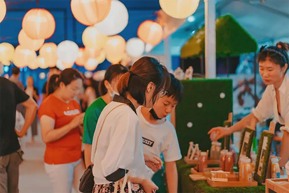 一街之隔的大宁国际商业广场利用开放式商业街区形态优势,将室内的餐饮商户“请”入露天广场,搭起“街区夜市”,还首次开创“夜市”PLUS版,融入公益慢跑、街头轮滑、百人运动、KPOP随机舞蹈等活动,解锁夜间社交新玩法。据统计,大宁夜市举办期间,客流增幅约37.3%,带动商圈周边人均消费数较增长约20.66%。