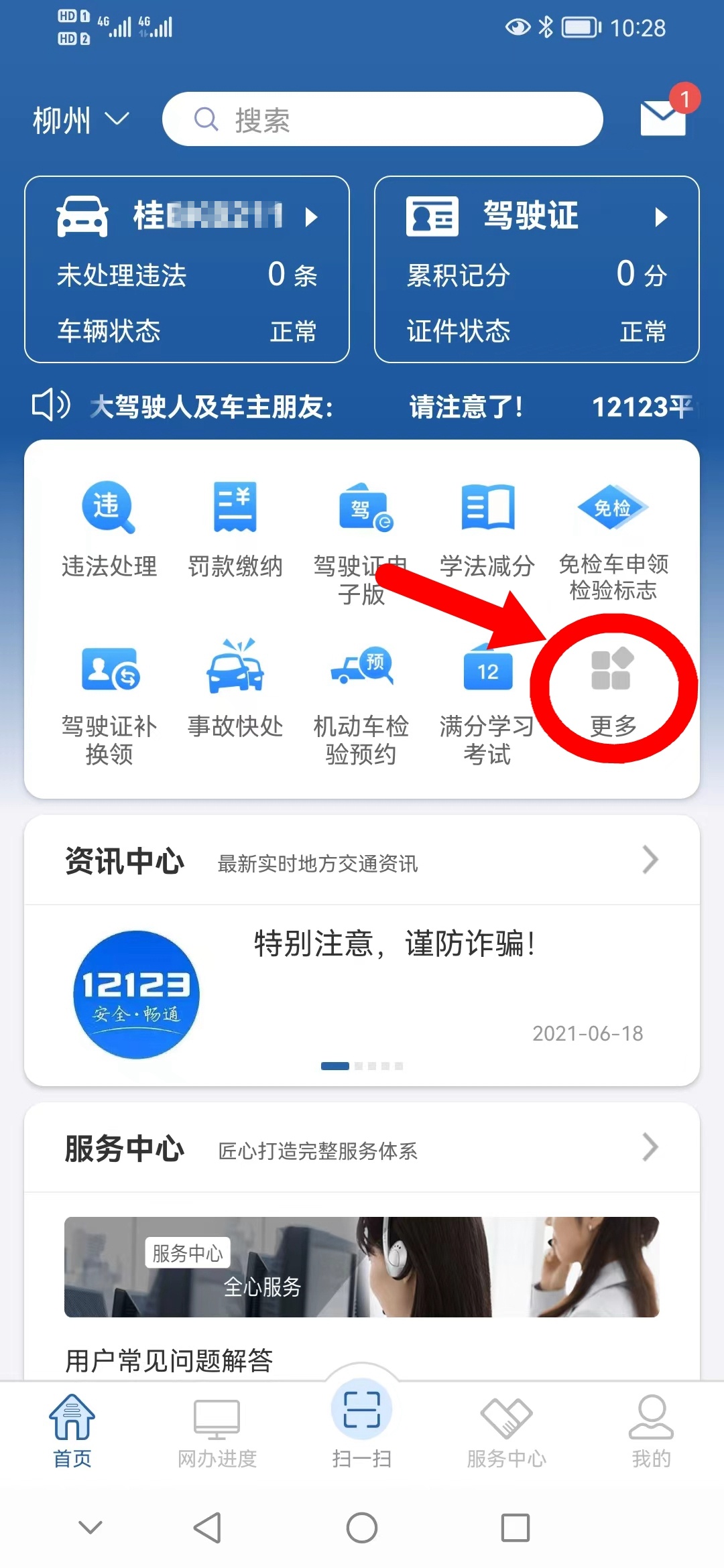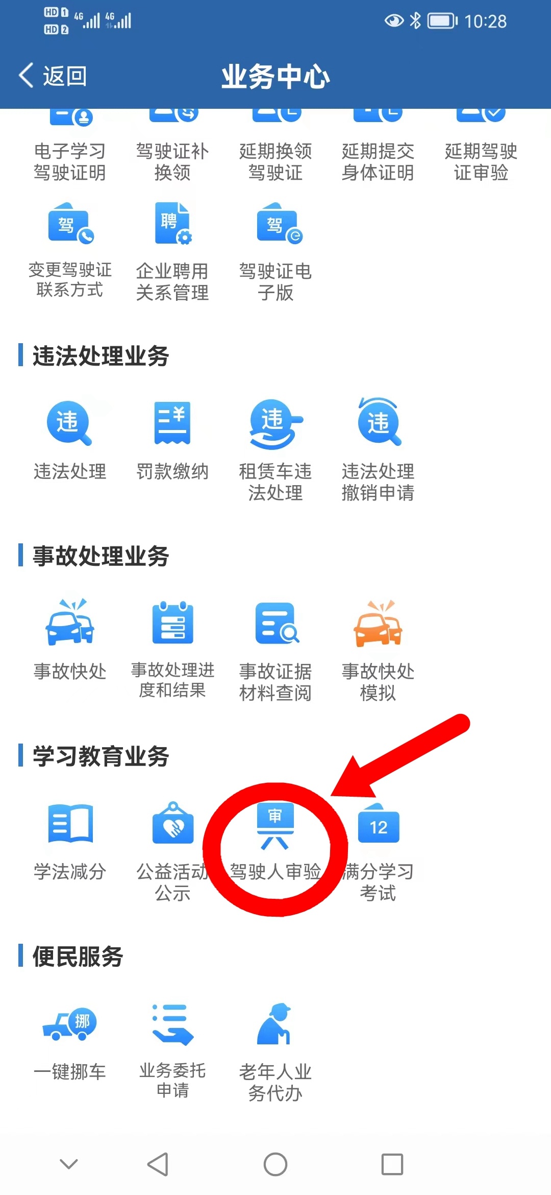 驾驶人用户登录“交管12123”APP后,在“交管12123”APP主页,点击“更多”→进入【业务中心】拉到最底页,“学习教育业务”栏,点击【驾驶人审验】→驾驶人用户请根据记分情况,选择申请“现场教育”或“网络教育”方式来完成审验教育。