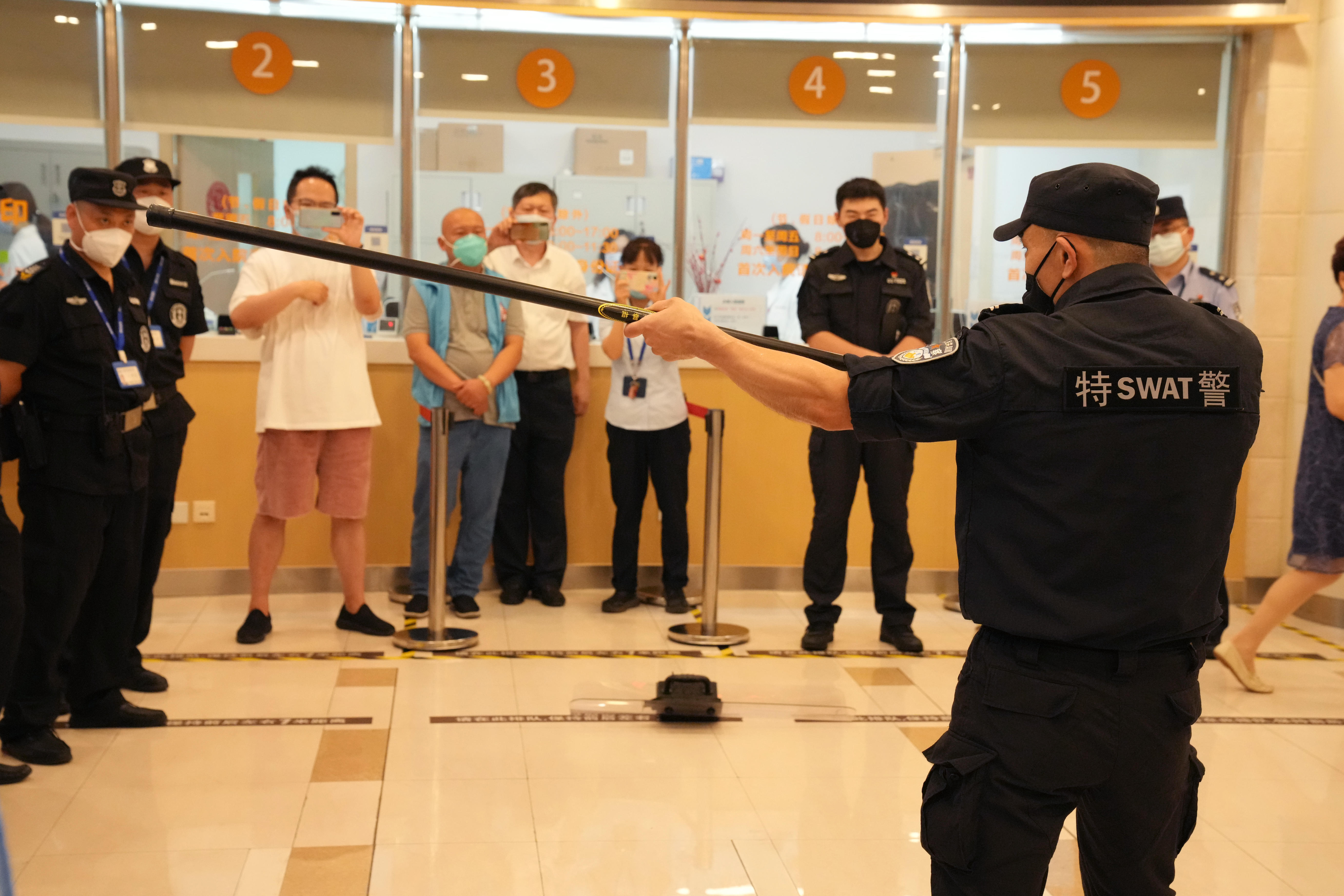 培训中,特警教官向在场群防力量传授了该类案件的处置要点及处置装备选择和使用方式。
