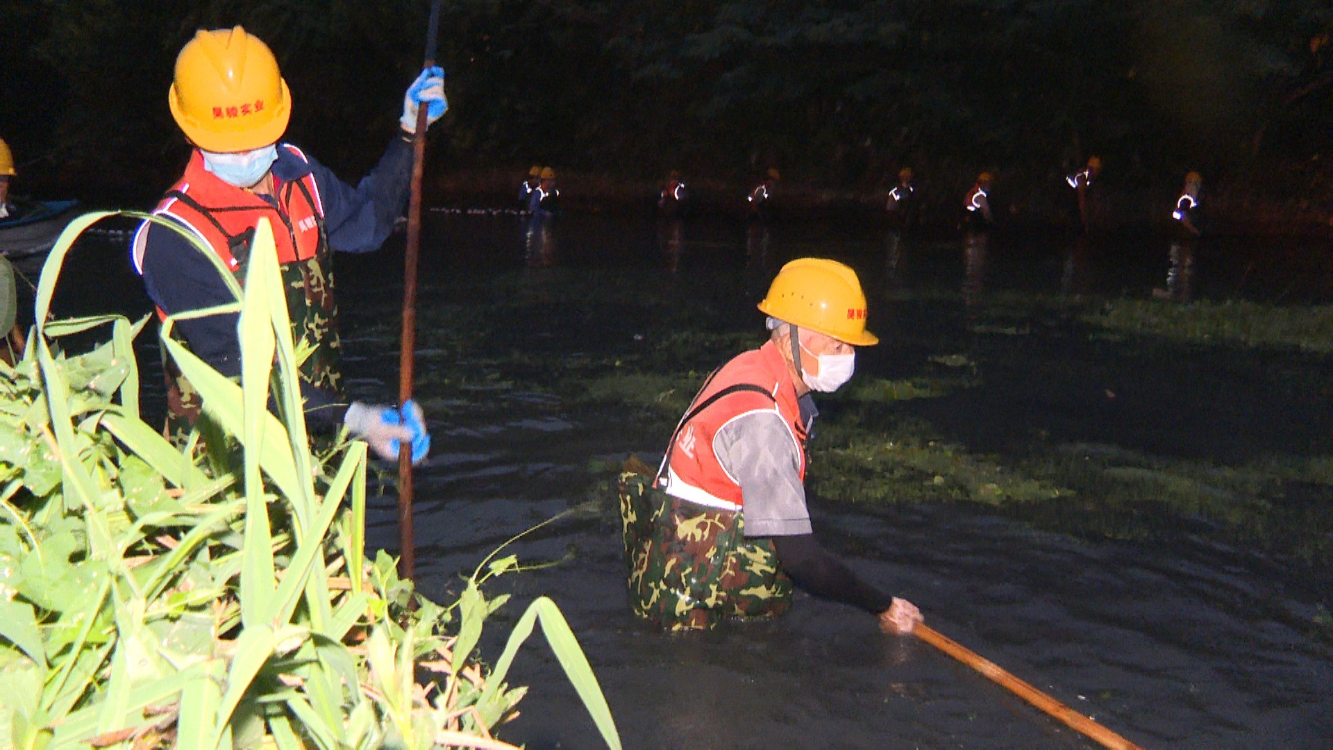 7月20日凌晨4时,在新桥镇北沙港,河道养护队长何纪华正带着17名队员摸黑涉水进入齐腰深的河道,众人共同拉网集中清除浮萍。一小时后,这支队伍完成了近500平方米水域的清理工作。自6月以来,新桥镇开展95条河道浮萍打捞整治工作,预计本月底基本完成。
