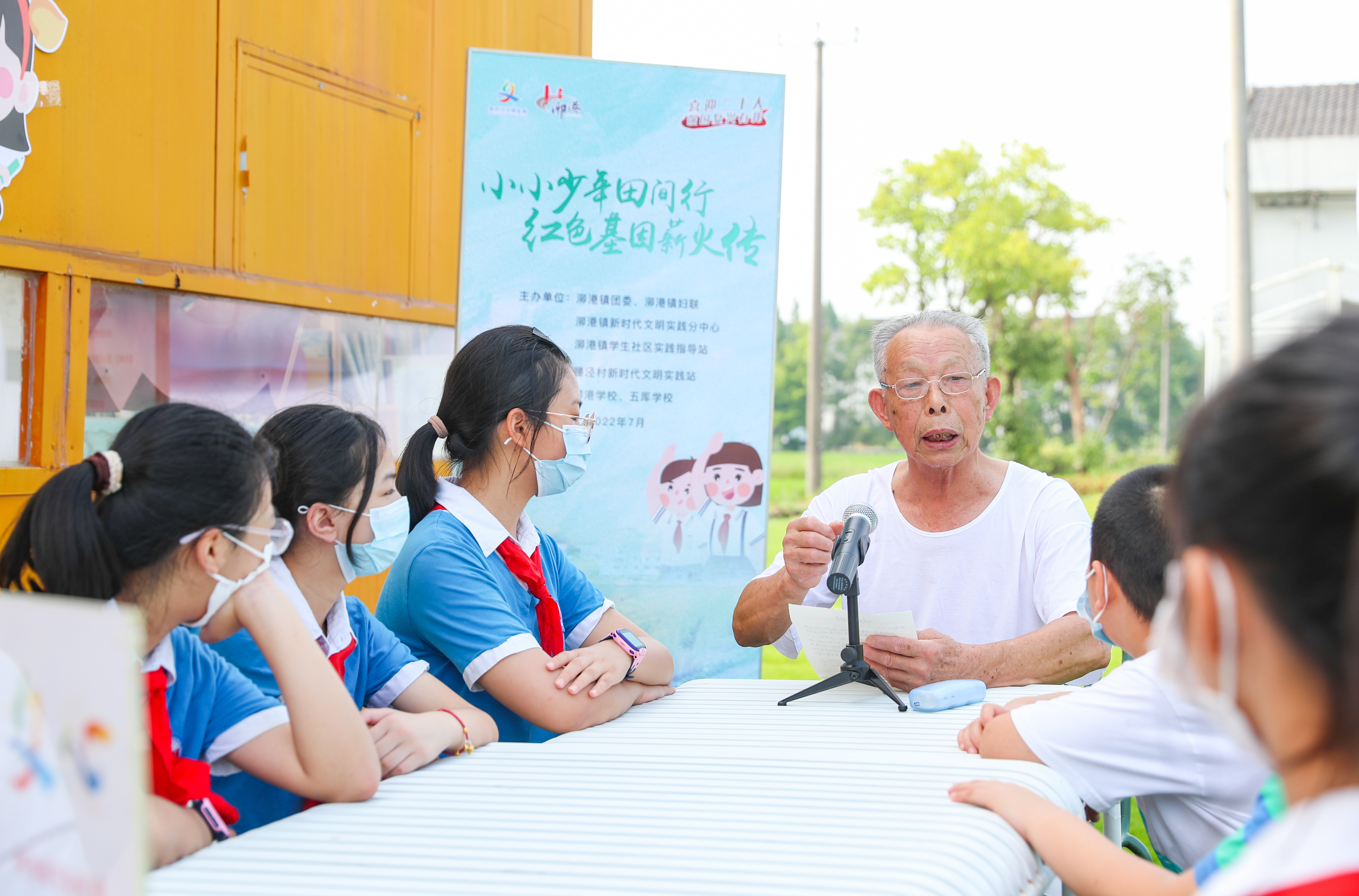 除了现场参观,主办方还邀请了泖港镇老党员蒋吉生和全国劳动模范李春风给大家讲述泖港革命先辈的故事以及新时代农村、农民的新变化。泖港镇团委书记王骁琛介绍:“现在很多孩子平时都是家校两点一线,生活也比较单调,我们希望通过暑期活动让他们深入了解家乡,培养他们爱党、爱国、爱家乡的情怀。”