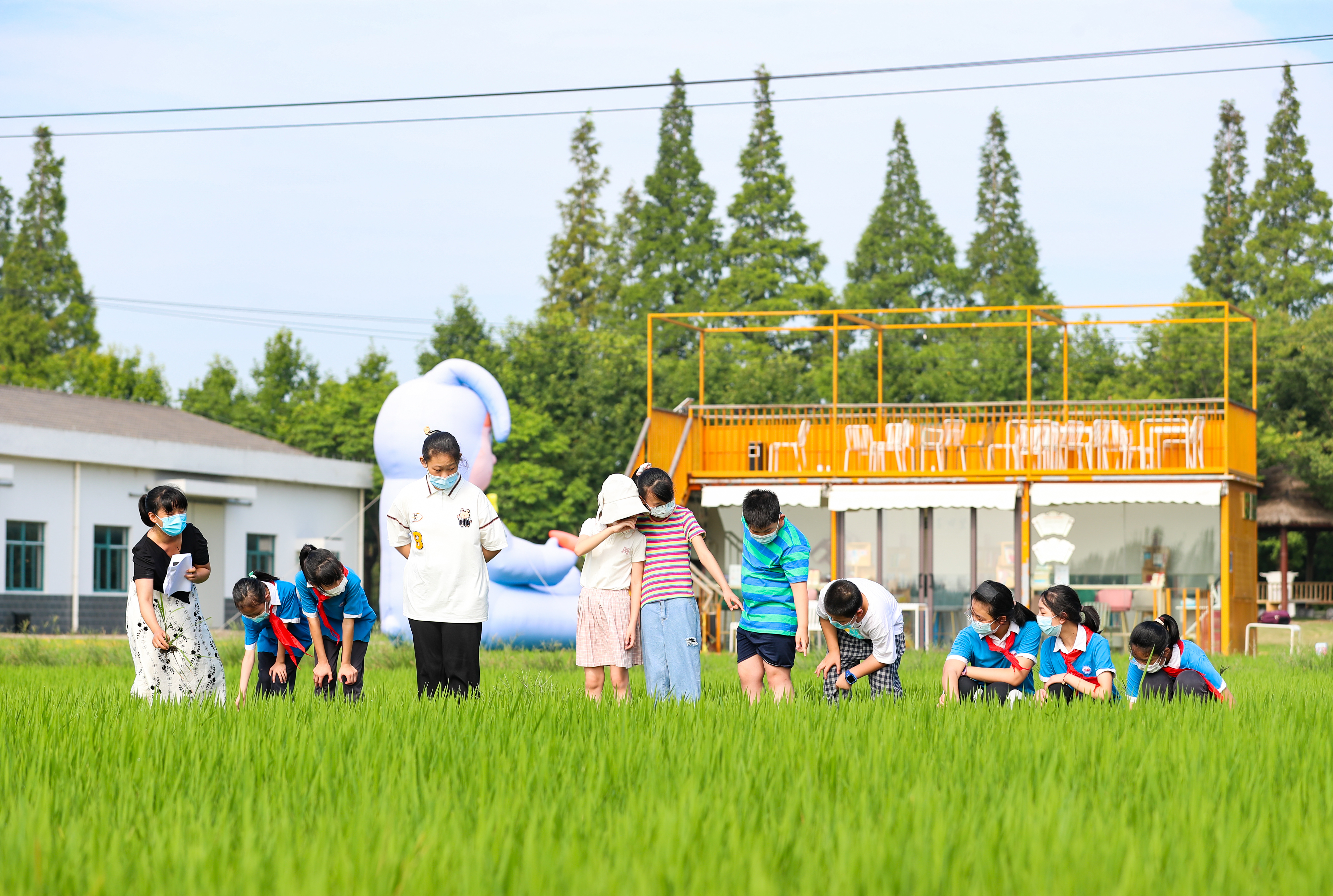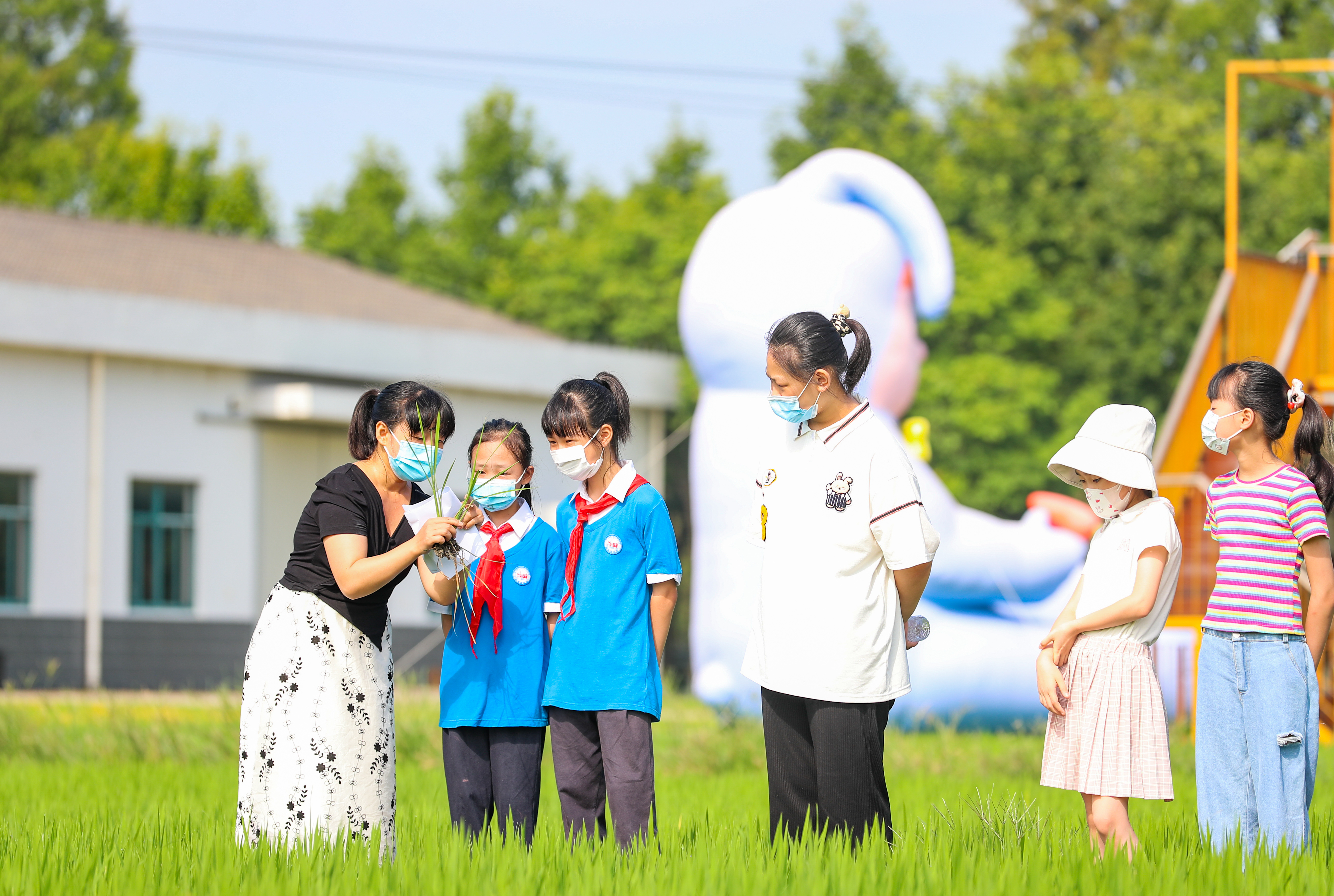 当天一早,记者跟着孩子们走进了一望无际的绿色稻田,闻着沁人心脾的稻香,听到蝉鸣声声,看到偶有蜻蜓落在尖尖稻叶上,眼前的景象让从小住在楼房里的孩子们非常好奇。泖港镇农业农村服务中心植保员唐金娟从田里拔出一株水稻,为孩子们科普水稻种植的全过程,孩子们饶有兴致地听着,不时还会提出问题。“今天看到的景色比我想象的还要美!”五厍学校学生张偌涵兴奋地告诉记者。