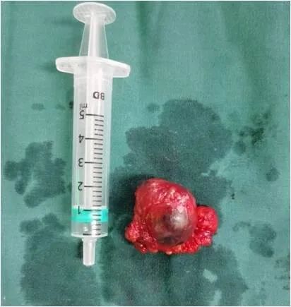 为了进一步寻找疾病的元凶,我院内分泌代谢科专家赵家胜主任医师亲自打电话给患者,建议他到同济医院来进一步检查。普通外科甲状腺中心吴社华主任接诊了患者并将其收住入院,甲状旁腺同位素检查显示右下甲状旁腺明显增大,放射性核素摄取功能明显增强(图7),证实了甲旁亢的诊断。颈部CT冠状面重建显示右侧甲状腺下方低密度软组织肿块(图8),完整切除该肿块(图9),病理证实为甲状旁腺腺瘤,患者的血钙从术前的3.23mmol/L降至术后的2.26mmol/L,甲状旁腺激素从术前的1830pg/ml降至10.6pg/ml。至此,隐藏在患者体内真正的元凶终于被绳之以法。为了弥补骨钙的“历史欠账”,术后长期补充维生素D和钙片,以防治“骨饥饿综合征”的发生,目前患者仍在随访当中。