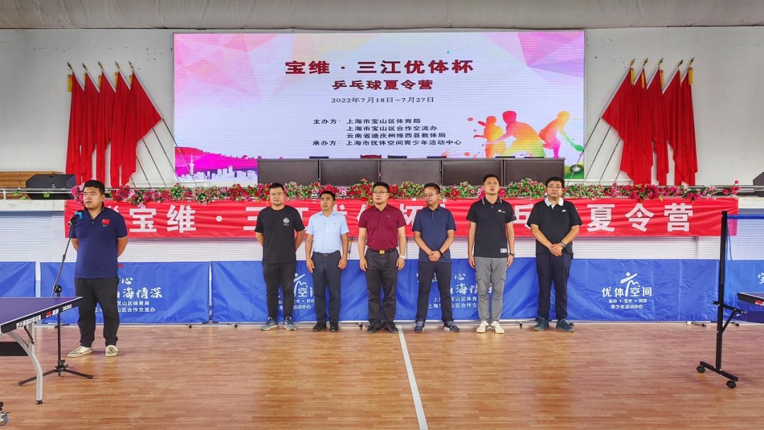 为帮助维西县培养有潜质的优秀乒乓球选手,建立高水准专业乒乓球师资团队,助力维西竞技体育长足发展,7月18日,由宝山区体育局、宝山区政府合作交流办、维西县教体局主办,上海市优体空间青少年活动中心承办的2022年度首个三交活动项目——“宝维·三江优体杯”乒乓球夏令营在维西县第三中学开营。