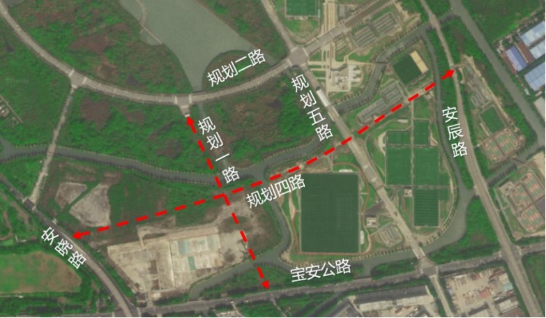 规划一路、规划四路建设规模均为双向2快2慢,设计速度30公里/小时;同步渠化规划一路/规划四路、规划一路/宝安公路等交叉口。