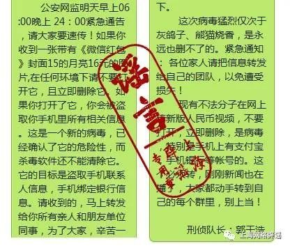 从截屏看,本次传播的谣言与6年前传播的主题一致,措辞也基本一致,只有些许字词不同。例如,6年前的谣言是“明天早上06:00晚上24:00紧急通告”变成“从明天起一直到八月十五中秋节紧急通告”;“15的月亮16元”改成“15的月亮16圆”;落款所谓的“刑侦队长:郭于浩”改为“市刑侦队长:侯继刚”等。以上变化并没有改变该传言语句不通、用词不规范的特点,更无法更改这是一条谣言的本质——早在6年前,微信官方就曾发布声明,指出微信红包图片有病毒纯属造谣。