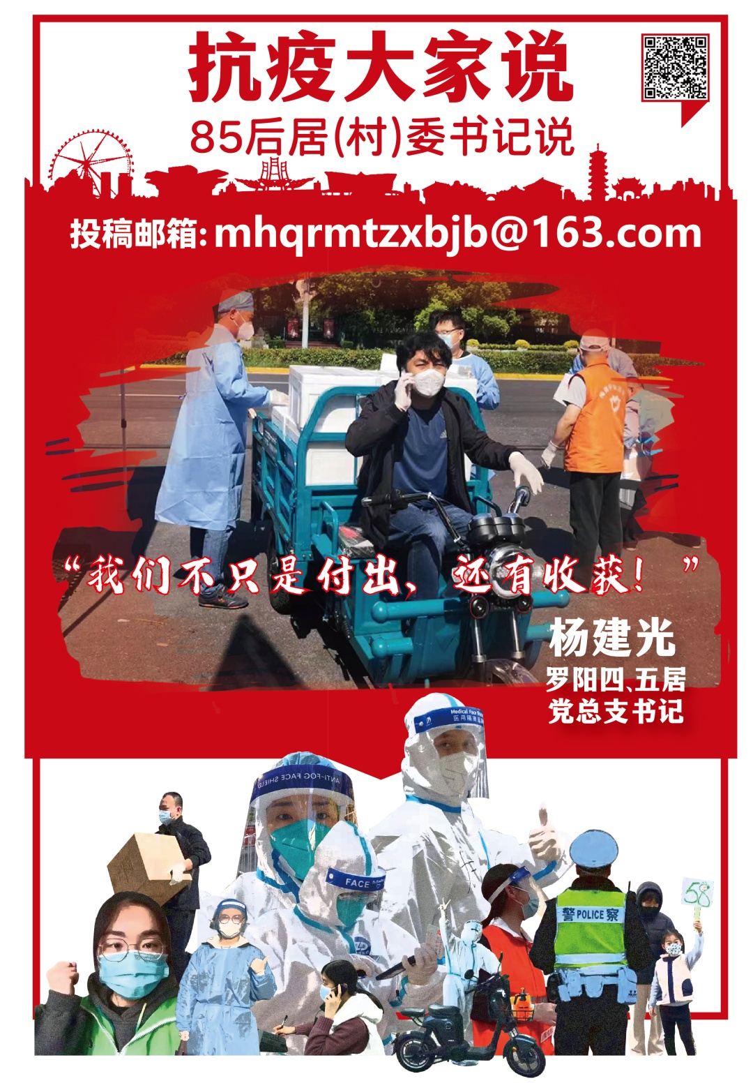 我是梅陇镇罗阳四、五居党总支书记杨建光,今年35岁。我所在的罗阳四村党总支管辖着2个居委,2000多户居民,4500余人。从3月初疫情刚开始蔓延时,我们就把家安在了居委会,只是没想到这一住就是3个月,每天睡2-3小时也成了常态。