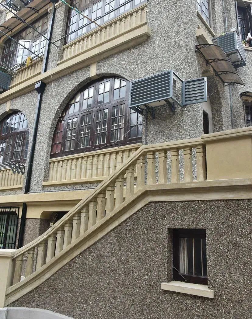 又如,修缮方将对拉毛墙面全部铲除,恢复成最原始的卵石和墙面,按照与整体风貌相协调的原则,对立面附属设施统一规整,更换雨水管污水管,更新空调外机罩、晾衣架,调换雨篷,修缮百叶窗、老虎窗天窗等,让建筑焕然一新,焕发原有的生机活力。
