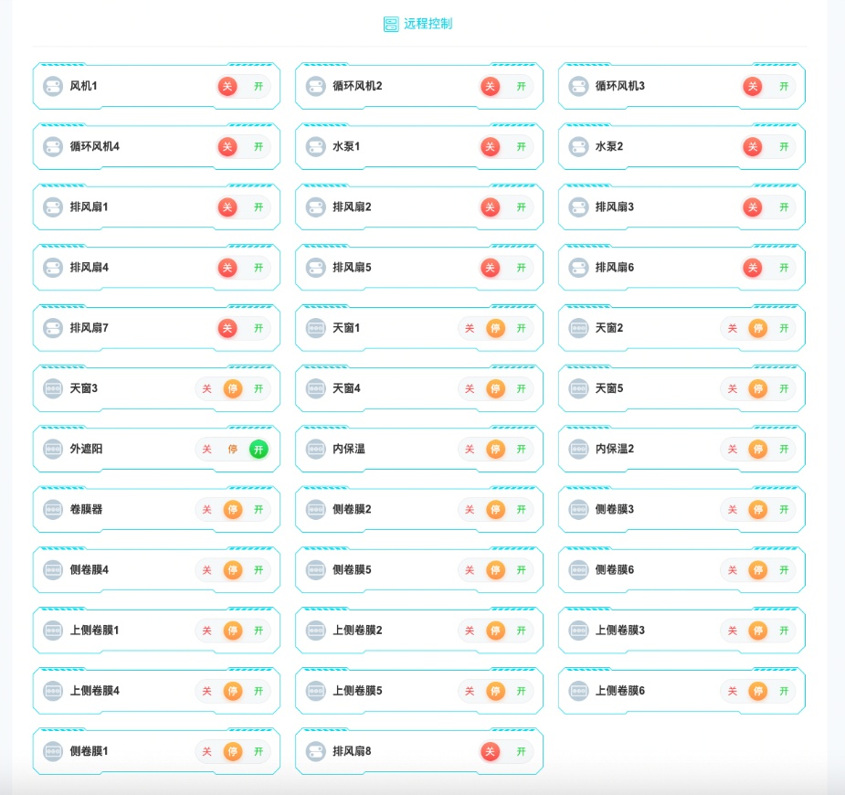 可以实现对温室内设备,如卷帘、电磁阀、水泵等设备的远程、批量的自动化控制。