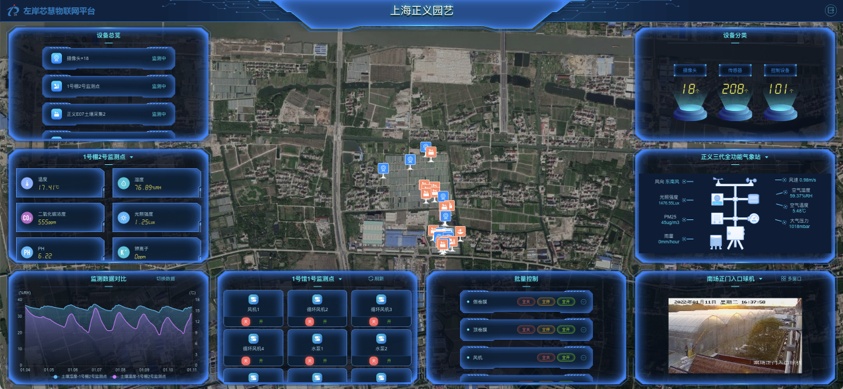 闵行正依托这张智慧的“网”让物联网技术在农田监测、作物种植等各方面发挥大作用。根据不同农业生产经营主体的种养殖需求,按照统一的数据传输标准和数据展示模板,搭建了一个企业级农业物联网基地管理平台。利用平台实现对基地所有部署的物联网感知和控制设备的可视化呈现与管理,包括对水肥灌溉、卷帘、风机、遮阳、增氧机等设施的远程和自动化控制,将物联网技术应用到现代农业生产设施设备领域,极大地提高现代农业生产设施设备的数字化、智能化水平,实现对农业生产完整过程的数字化控制。