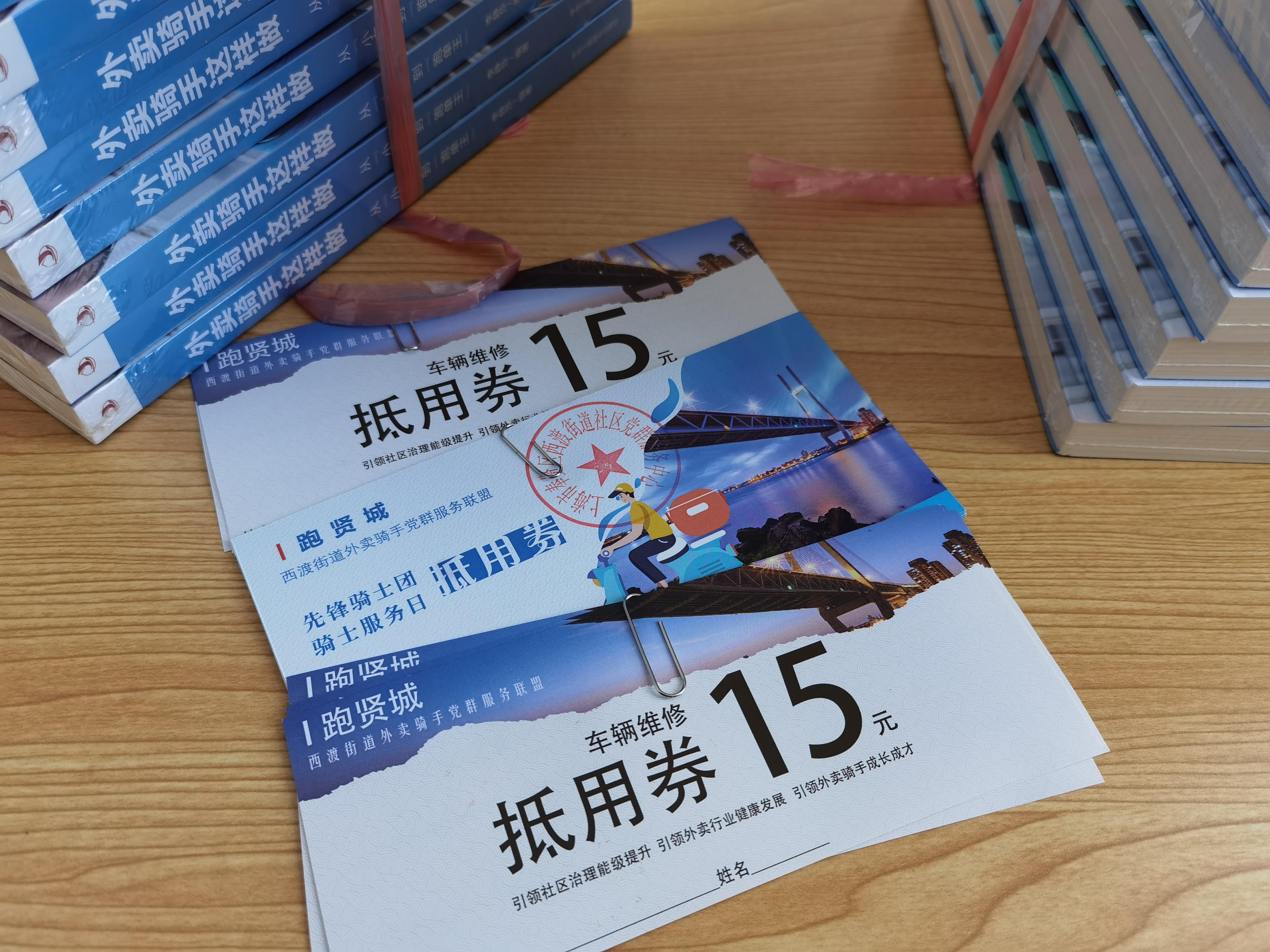 原来,当天下午,西渡街道社区党群服务中心发布了外卖骑手党群服务联盟“先锋骑士团”项目,党群、城管、网格、居委、外卖站长、优秀骑士等组成党群联盟。今后,联盟计划每两个月举办一次骑士服务日活动,为骑士们统一发放各类抵用券或消费券。项目发布现场,优秀骑手代表获赠了第一批理发券和修车券,有几位拿到消费券后第一时间前往相应门店使用了。