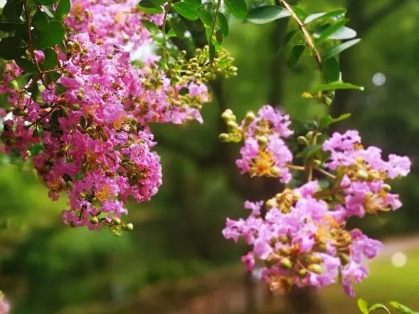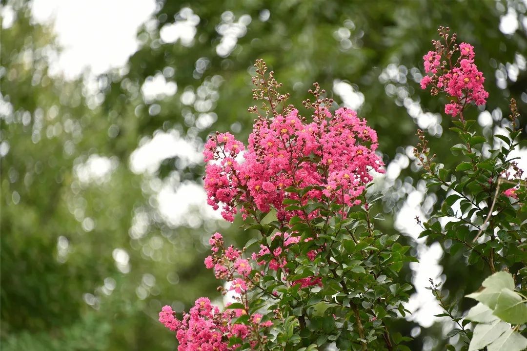 今年年初,共青森林公园在园内野营林区区域打造了紫薇特色景观大道,共种植80株“天鹅绒”紫薇近期迎来了最佳观赏期,成为夏日里的一道靓丽风景。