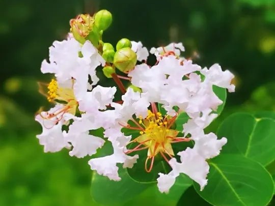 宋代刘敞有诗咏:“紫薇异木,名与星垣同。应是天上花,偶然落尘中。”因此,家门遍植紫薇,也成为人们一种祈福纳祥的美好愿景。在徐汇漕溪公园,如梦似幻的紫薇花在这个潮湿而炙热的夏天,为人们增添了一份柔美与清凉。