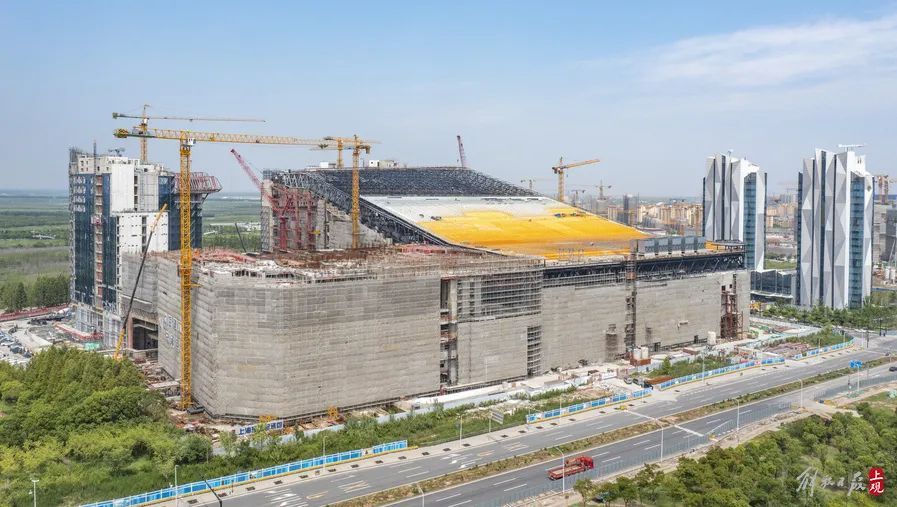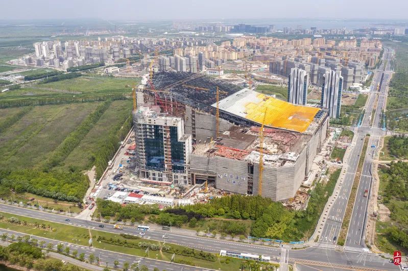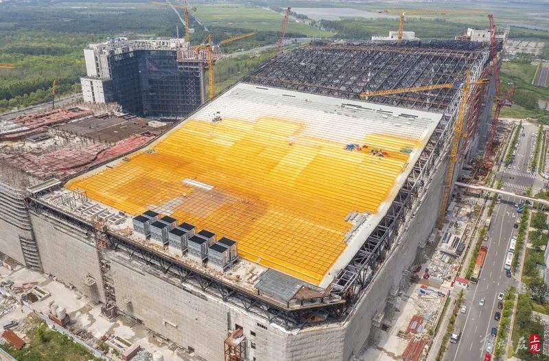 近日,位于临港新片区的全球最大室内滑雪场项目“耀雪·冰雪世界(暂定名)”施工现场内一派忙碌景象,多台吊机在空中来回穿梭,项目整体已迎来建设高峰。