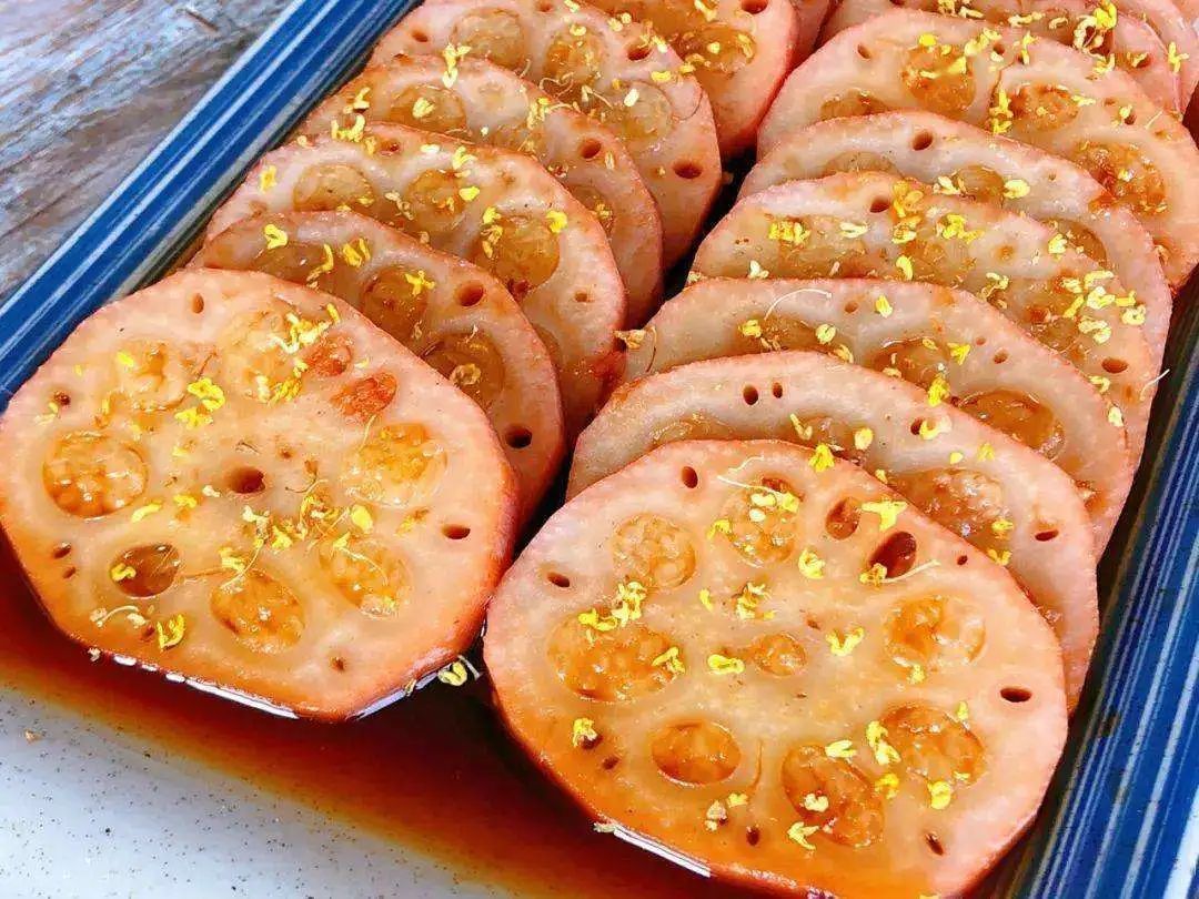 ·煮至莲藕软糯,汤汁浓稠后出锅切成片状