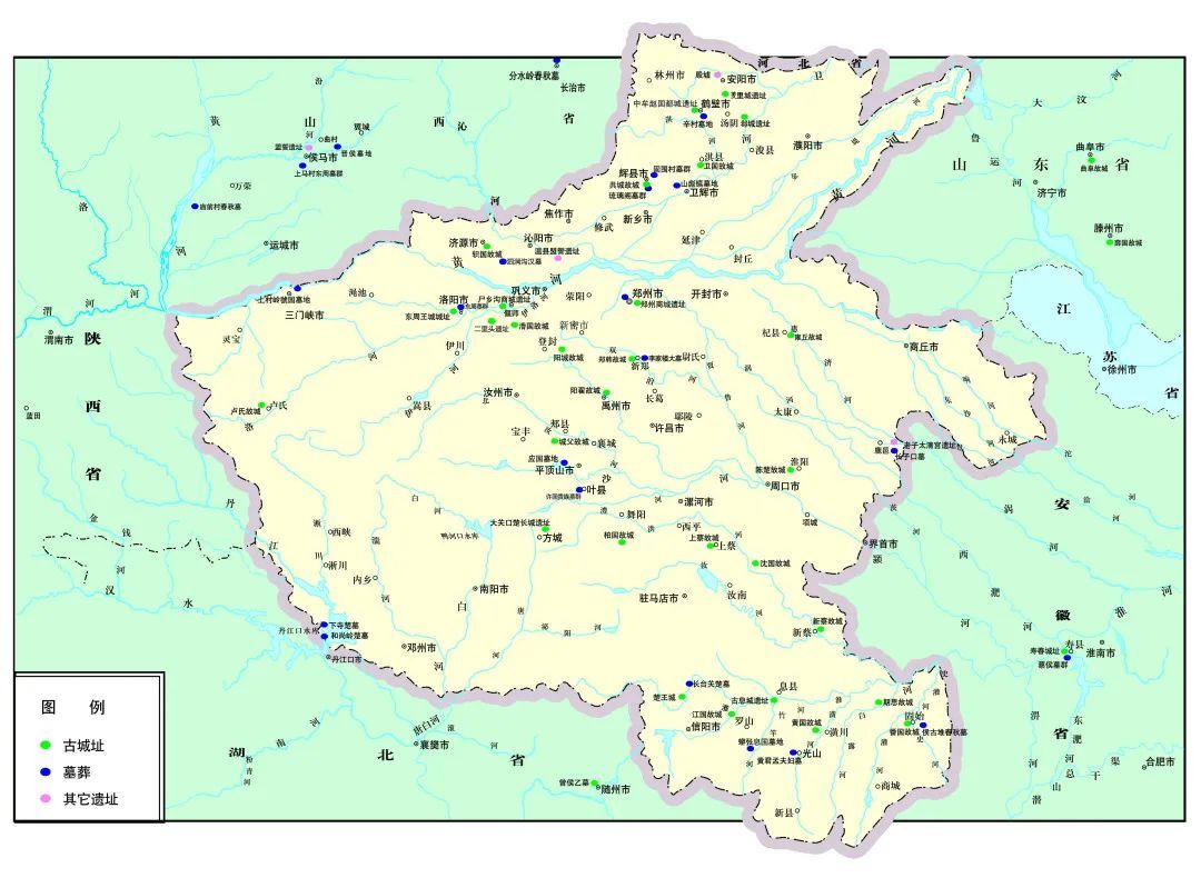 • 河南省境内主要夏商周遗址分布图