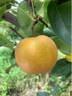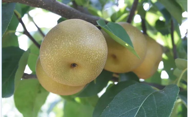 因果形漂亮如满月而得名。果实扁圆形,果形端正,果皮黄褐色,套袋果呈浅黄褐色,外观漂亮。果皮薄,有光泽,果肉乳白色,肉质细脆,汁多味甜,口感清香爽口,石细胞少。果形大,平均单果重450克左右,最大可达1000克左右,可溶性固形物含量13.5%左右,上海地区8月底9月初成熟。