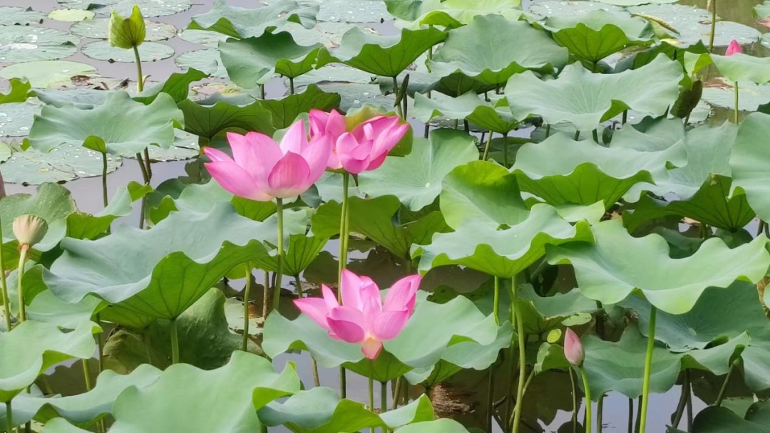 四季生态园内,成片的荷花绽放着优美的身姿,迎着风摇曳,带来淡淡的幽香,沿着小路前行便可深入荷花丛中,与千姿百态的荷花来个近距离的接触。