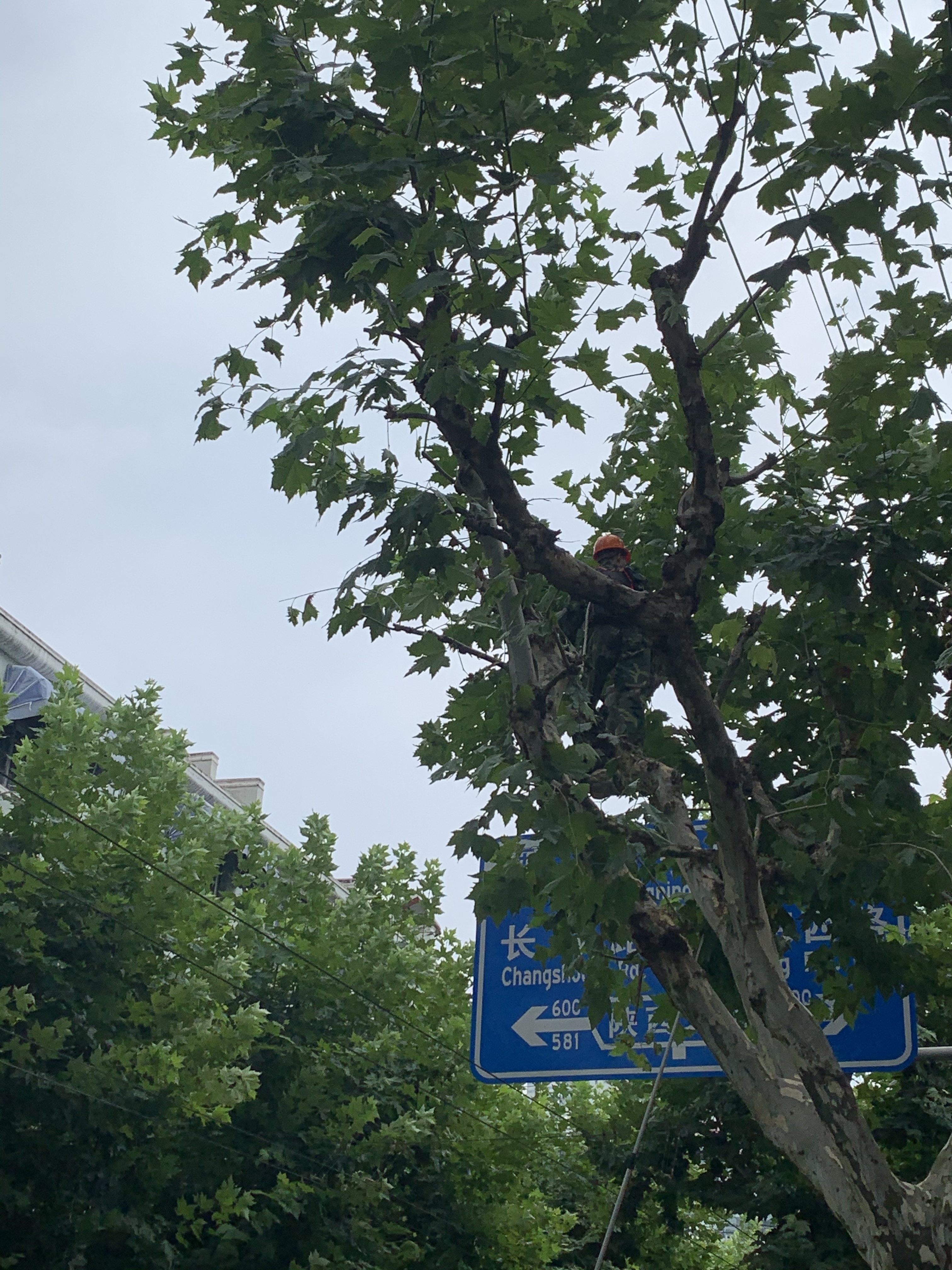 (工人在树上操作)
