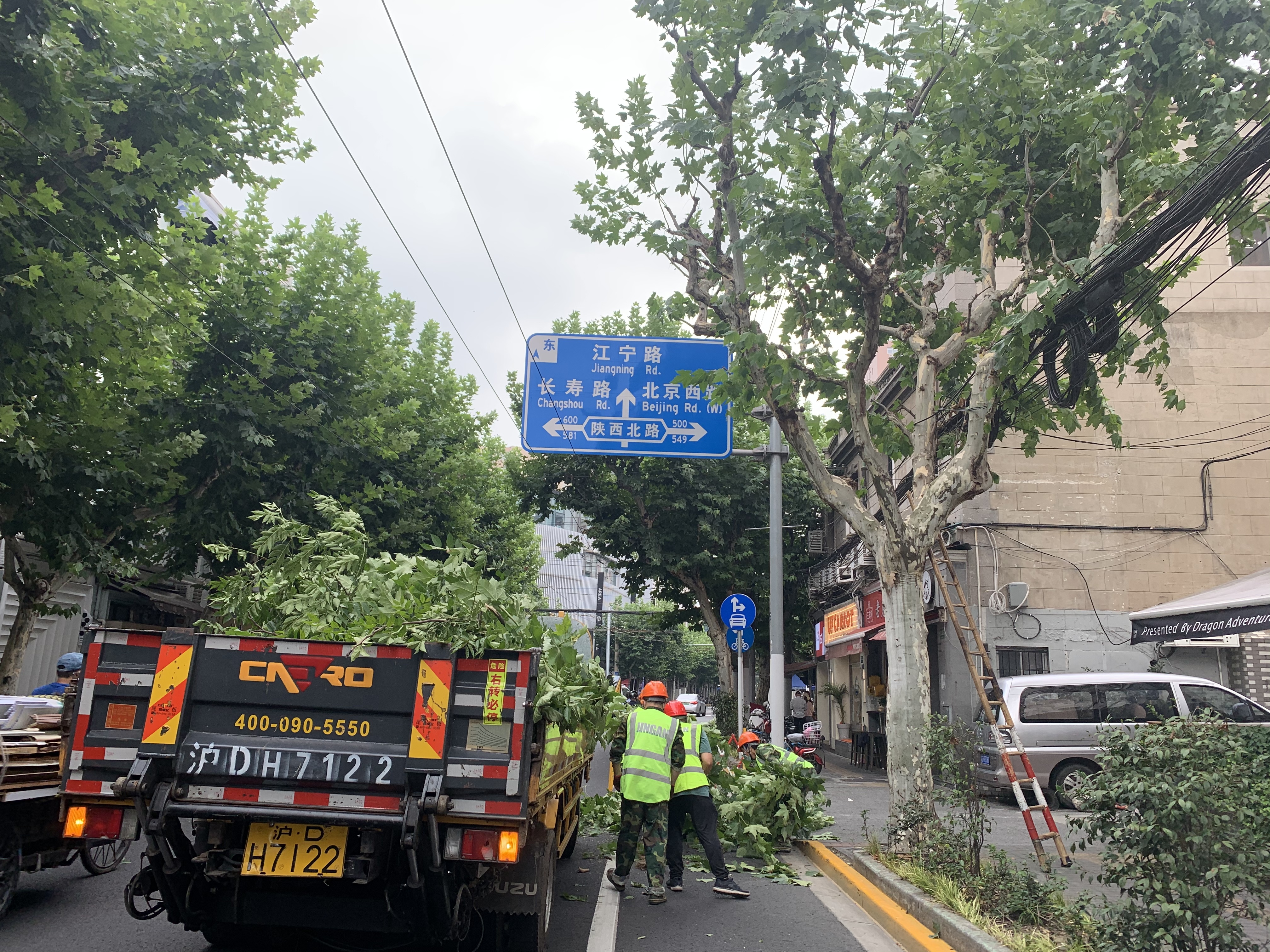 7月20日,静安园林的行道树养护队对新闸路上一处遮挡道路指示牌的树木进行了修剪。市民黄先生表示,原本树枝遮挡了路牌,经过的司机有时感到不方便,工人处理之后,路过的人感到眼前一亮。