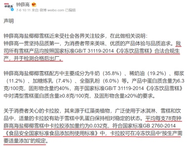 尽管商家称,在这款“高温不化”网红雪糕中,食品添加剂卡拉胶的添加量符合国家标准,但食品添加剂含“胶”太多仍是网友质疑网红雪糕烧不化的“主因”。那么问题来了,是否因为食品添加剂含“胶”太多,导致网红雪糕高温不化?