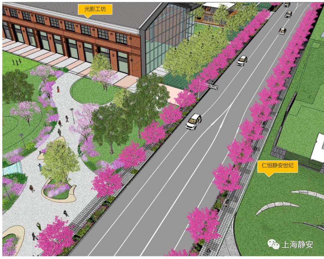 区房管局住房配套科科长范胤翡介绍,云秀路位于静安区市北国际科创社区内,为了与周边环境充分融合,整条道路将按照全要素设计要求,根据主题化、彩色化、珍贵化、精细化的原则,种植特色行道树种,同时利用人行道边界增加隔离带,通过行道树和绿篱的种植组合,美化、提升道路的整体种植效果,打造成一条具有上海区域特色主题植物印象的景观道路。