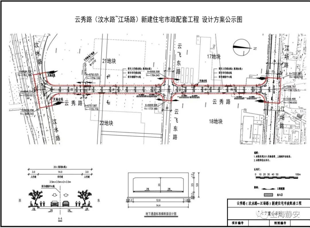 记者了解到,该项目南起汶水路,北至江场路,全长约564米,路幅宽20米,设置双向二快二慢车行道和人行道,设计车速40公里/小时,并新建一条东西向地下通道连接两侧的办公楼。