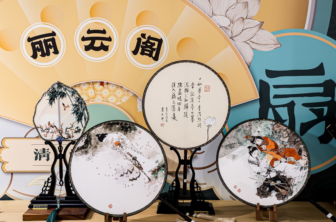 华宝楼里大有看头!这里正在集中展示各色精美的工艺扇——清香宜人的檀香扇、精巧的苏绣团扇、清雅的书画折扇,其中还有邢伟中大师(国家级非遗制扇技艺传承人)价值百万的珍品檀香扇,王健、盛春等制扇大师的杰作,以及知名新锐艺术家石佳冉、张雪的作品,大家能零距离欣赏到不同地区的代表性扇品,触碰鲜活的传统工艺。