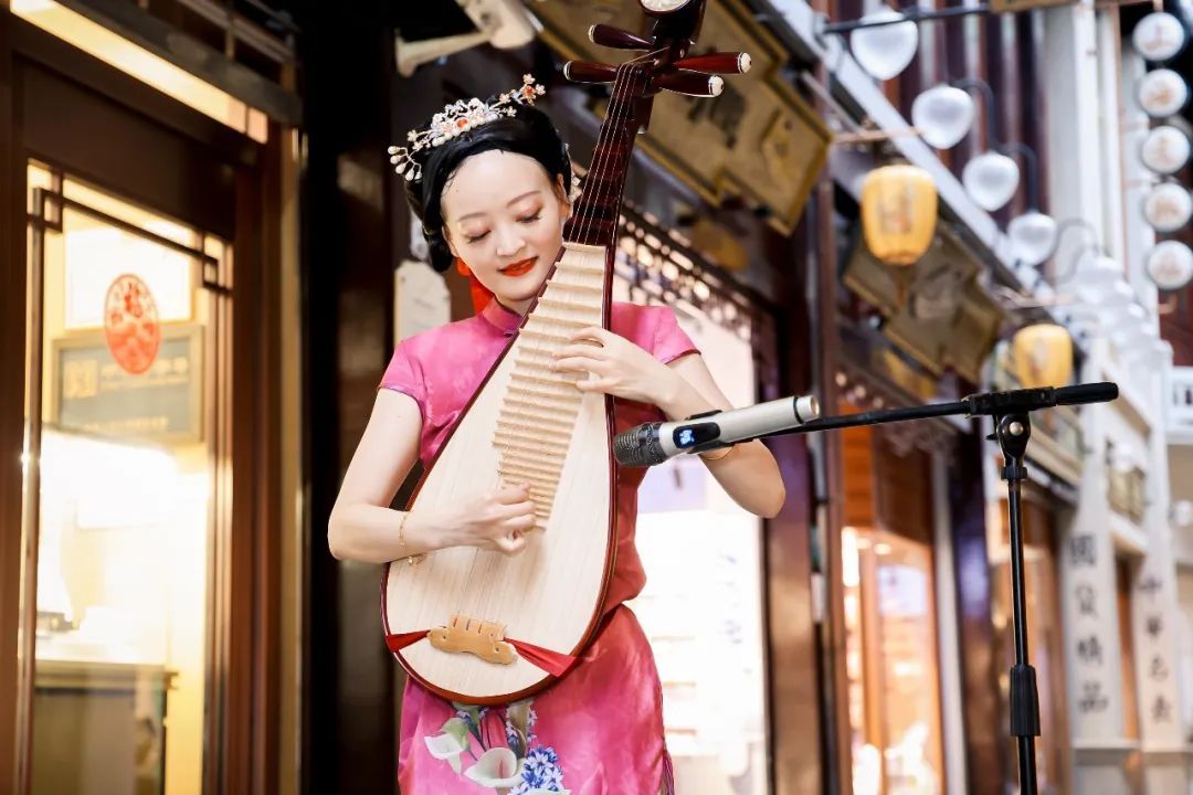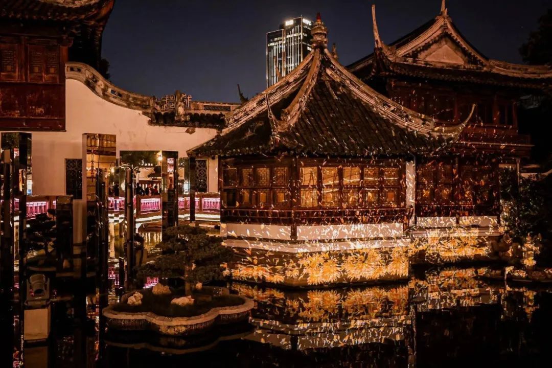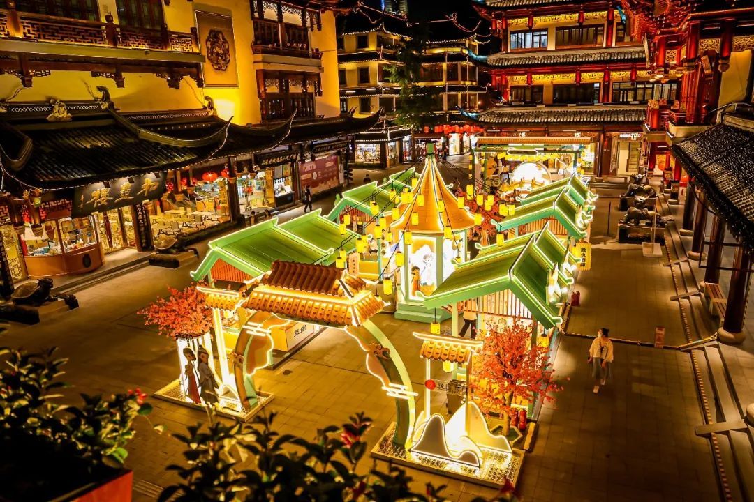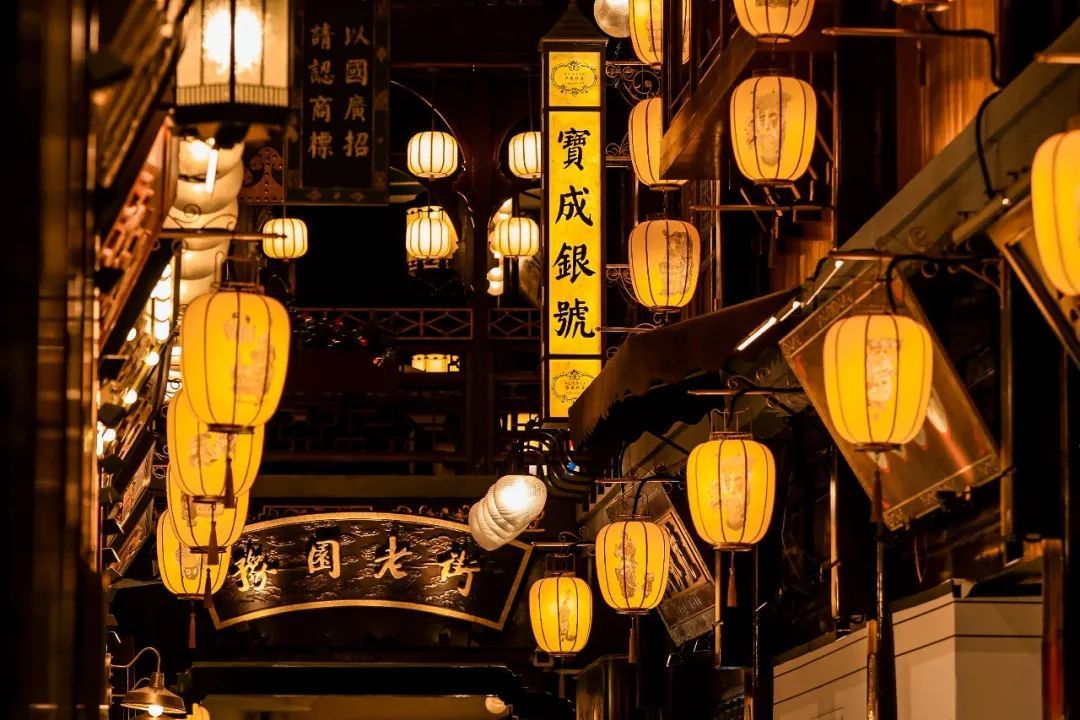 豫园老街挂上了朴实典雅的黄色灯笼,耳畔突然传来老上海怀旧流行音乐,老城厢精致优雅的生活韵味一一展现。