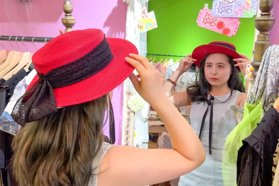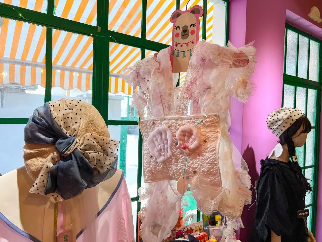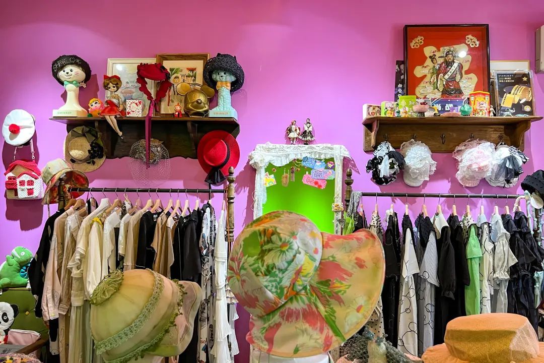 据店主飘飘介绍,拇指山大商店是一家主打全年龄少女风的多品牌集合店,以女性创业的国内优秀独立设计师及日系设计品牌为主,产品涵盖衣服、裙子、帽子、配饰等日常穿搭所需,希望给消费者呈现“弄堂里的嗲米道,粉红色的烟火气”。