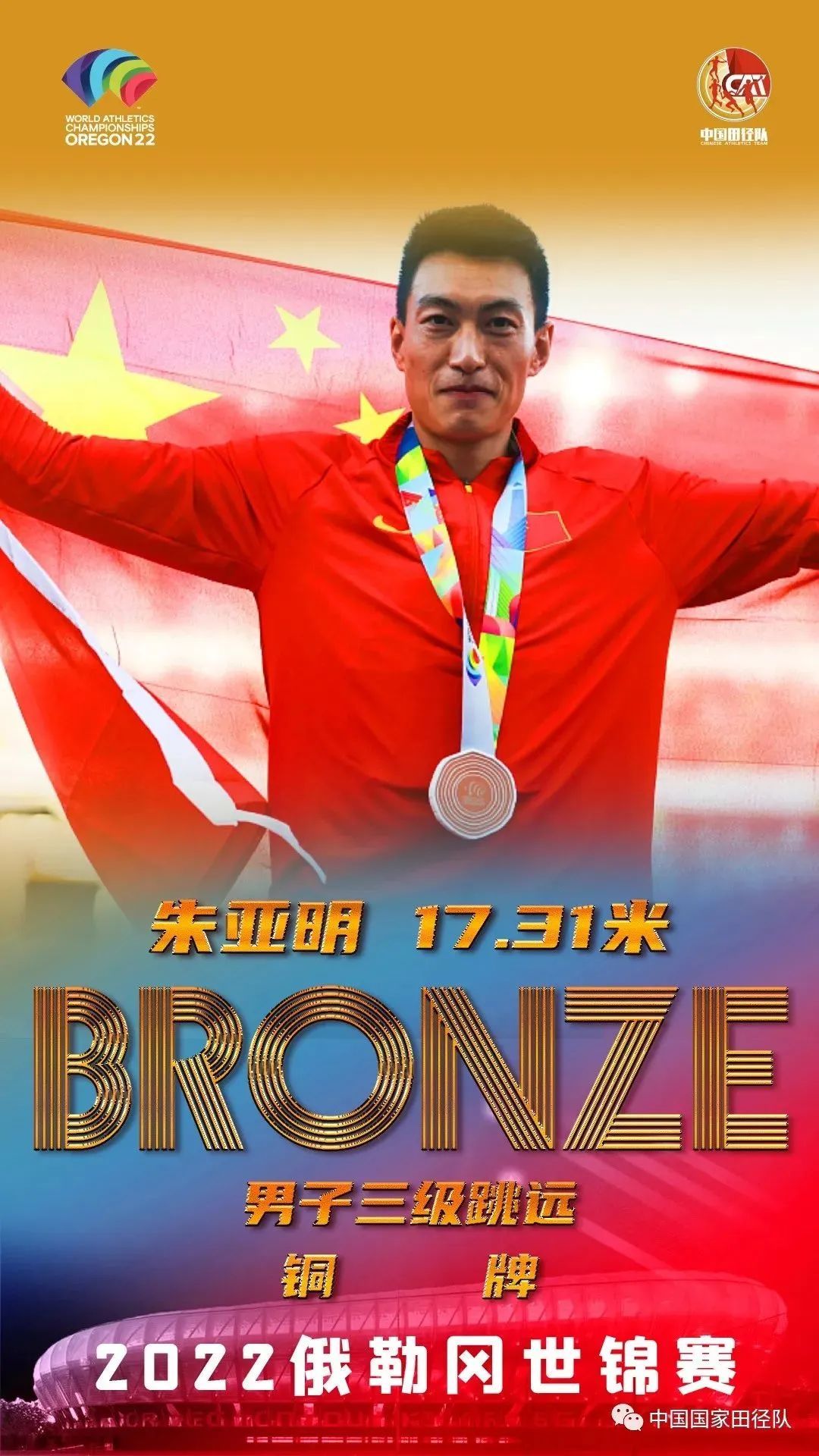 这一次朱亚明能够站上尤金世锦赛的领奖台,不仅仅是自己成绩上的一次突破,也是中国三级跳在世锦赛上的一次突破。相比于奥运会,中国男子三级跳远此前在世锦赛上的表现并不算抢眼,只一次闯入过世锦赛前8名,最好成绩是名宿李延熙在2009年世锦赛获得的第6名。