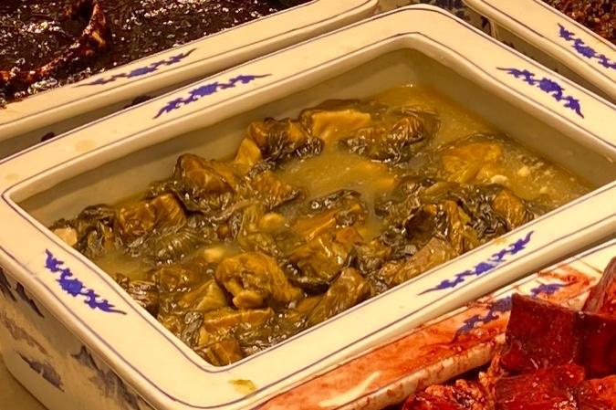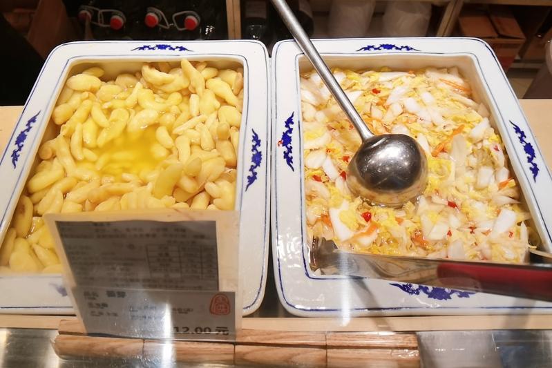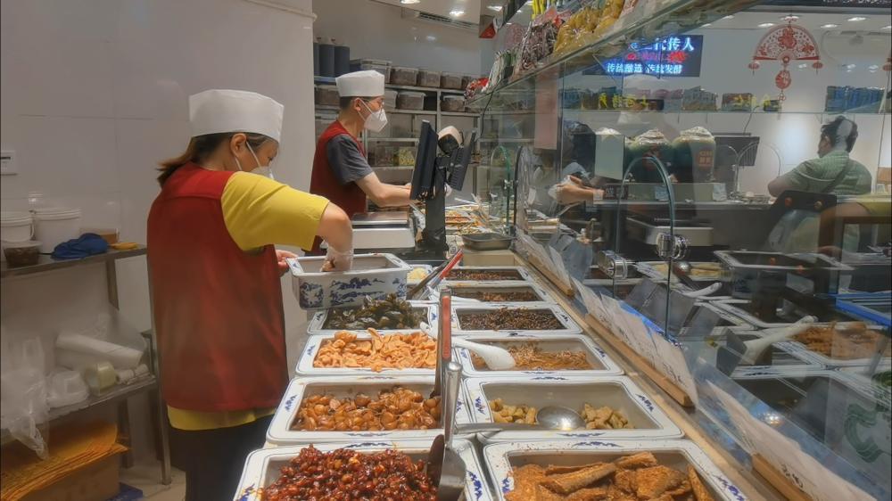 还有一个细节很打动消费者:称分量的时候,营业员只取“干货”;称完结算后,再为消费者添入卤汁。比如,记者选购了什锦菜、腐乳等酱菜,称重完毕后,营业员特意往袋子和盛器中加了一点卤汁。