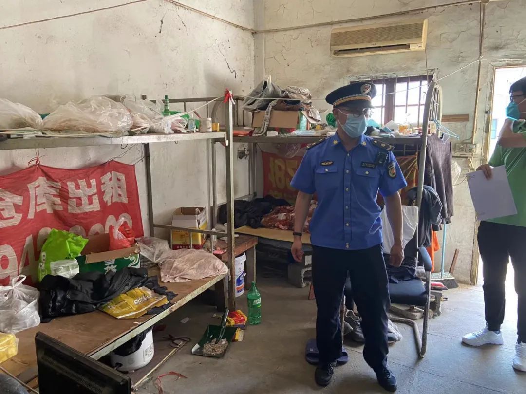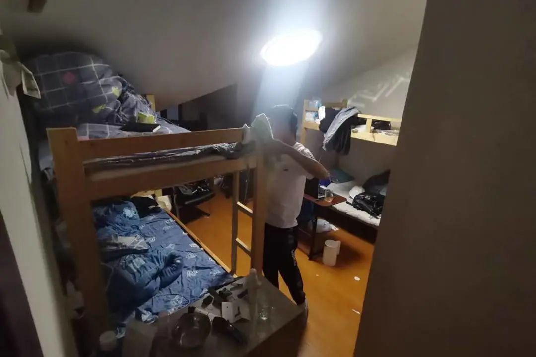 执法人员还在检查中发现,嘉唐公路一处20平方米大小的房间内放置了5张上下铺,并确认有9人共同租住于此。在娄南村民组的另一处出租房内,10平方米的房间里居住了5名租客,且食宿均在一处,环境卫生状况令人堪忧。针对上述违法居住现象,执法队员现场核实情况后,立即提出整改要求。