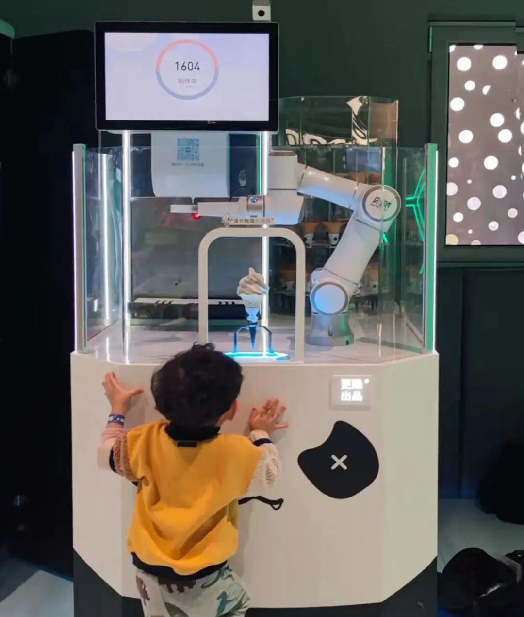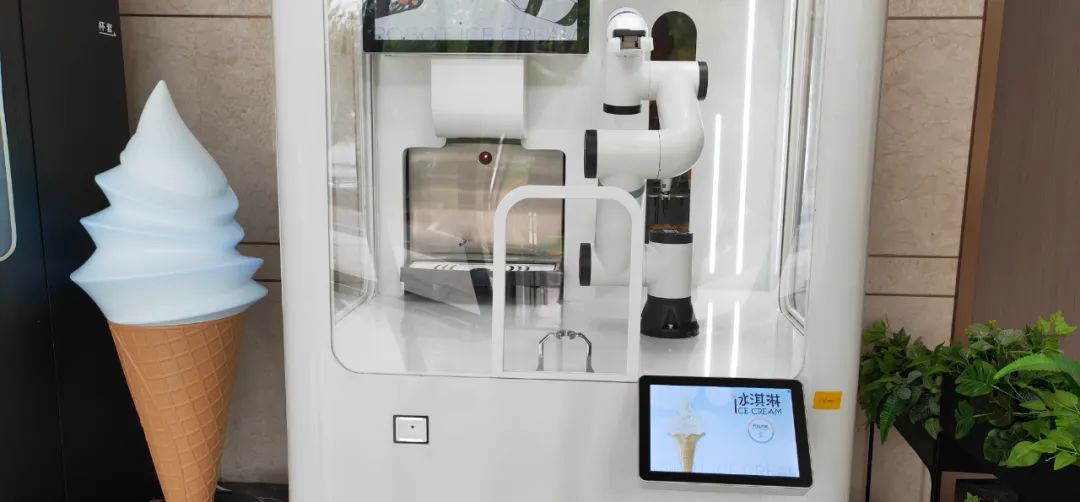 在更酷科技公司总部楼下,摆放着几台冰淇淋机器人展示样机,造型新颖,显得酷酷的。到这里参观考察的客户,只需要根据页面提示,简单操作,便可感受机器人全自动操作,一只美味的冰淇淋立等可取。