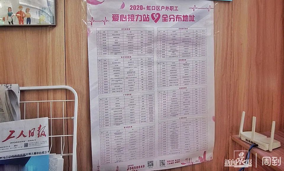 记者注意到,在这家爱心接力站内,悬挂着一张表格,上面罗列着虹口区所有爱心接力站的位置。