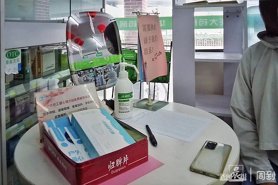 一位热心的超市员工拉住记者说,尽管超市里没法帮忙“加水”,但原本有供户外职工休息的桌椅。只不过,这段时间,桌子区域被当成了卫生纸促销的展台,椅子也被撤走了。随后,她热心地为记者从员工休息室搬来了两把凳子,招呼记者在一旁坐下。