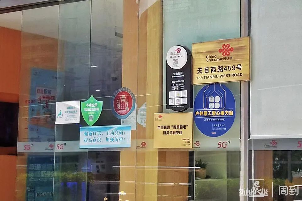 第4站的情况稍好,联通天目西路营业厅的工作人员将记者安置在了营业厅内的休息区中,并为记者提供了盐汽水。但和前面3家站点一样,无论条件好坏,记者都是该站内唯一一名“户外职工”。