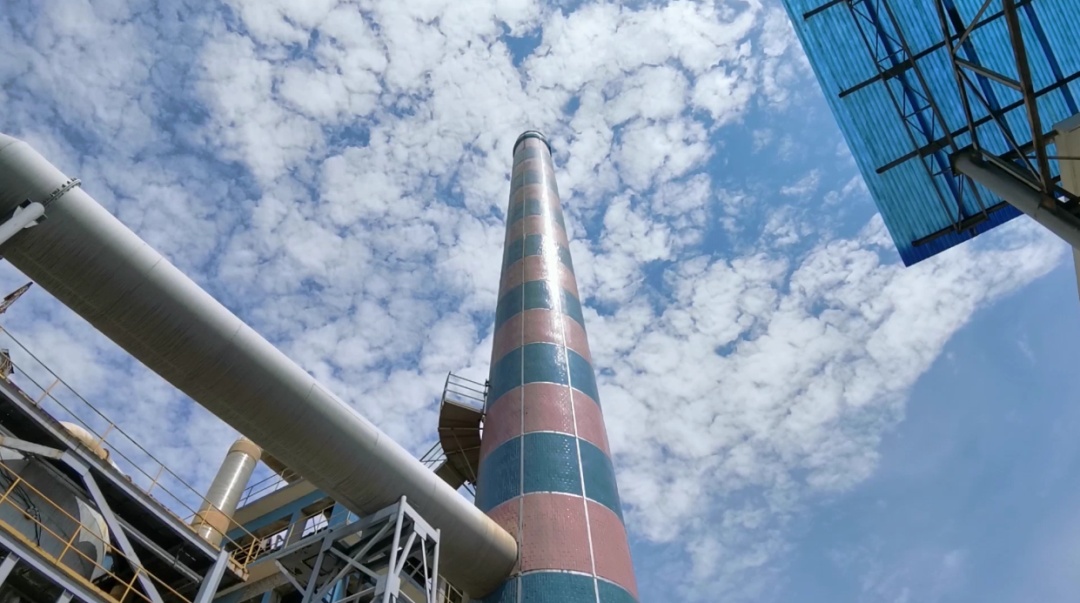 下午一点,室外温度已经超过35度,记者跟随金山区环境监测站的工作人员来到了位于碳谷绿湾产业园内的上海澎博钛白粉有限公司。一进厂区,就看到了一根醒目的烟囱,而这就是今天的采样点位,工作人员则需要徒步走过高约10层楼的台阶,去烟囱中部的平台处采样。