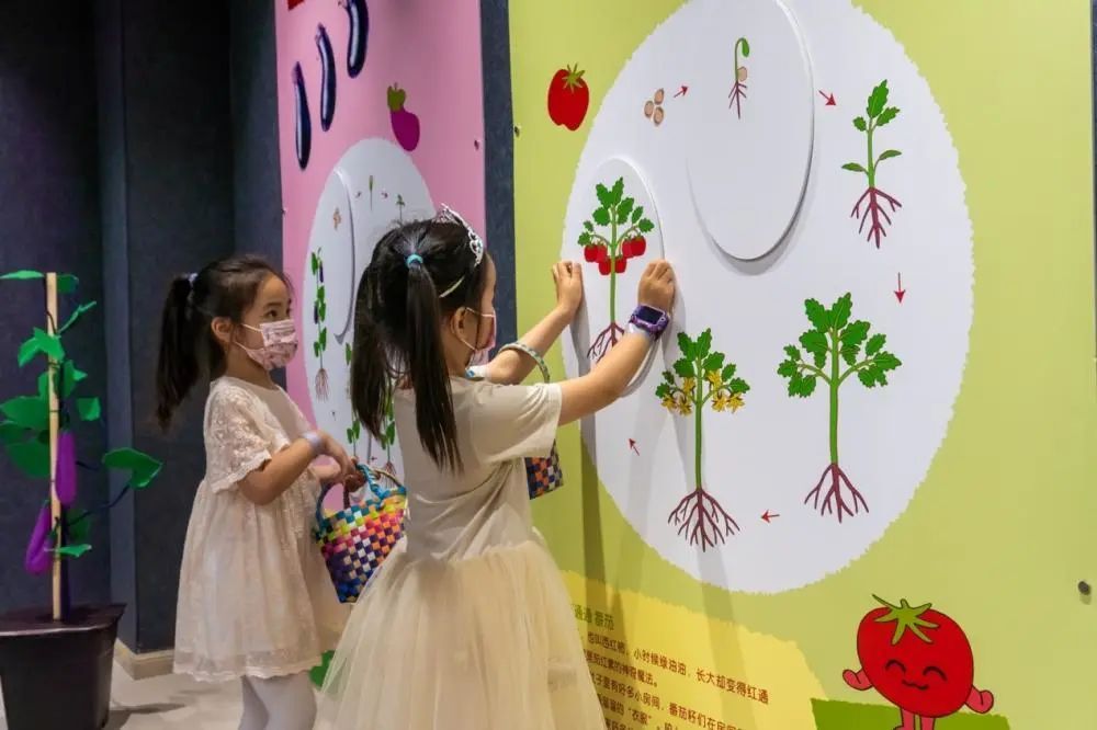 由笛德侯文化实验室、上海东方娃娃童书馆、少年儿童出版社共同策划的“谢谢你的菜”互动展面向亲子家庭,结合蔬菜科普与生命教育,希望延续蔬菜带来的记忆和收获。互动展面向3岁至8岁亲子家庭,以少年儿童出版社出版的“我爱蔬菜”系列图书为基础,贯穿萝卜、番茄、卷心菜、茄子、南瓜、土豆等多种蔬菜从种子到萌芽再到开花结果、成熟收获的生命历程。