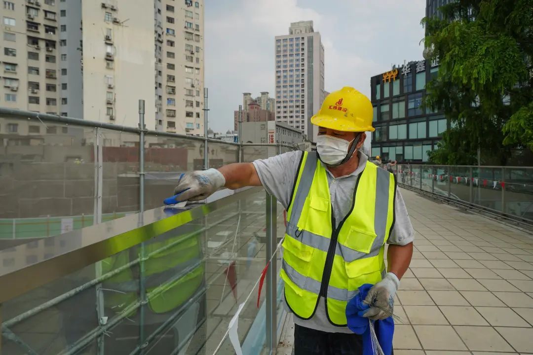 “我们在建设过程中把天桥的整体品质进行了相应的提升,主要囊括了两个方面,大家也看到了我们现有的铺装,因为时间比较久了,有所老化,有部分破损。我们在这次提升当中会对天桥的面层铺装进行防滑处理,让防滑效果更好,行人走起来会更加舒适,更加安全。”鲍伟说。
