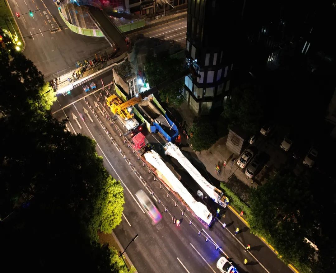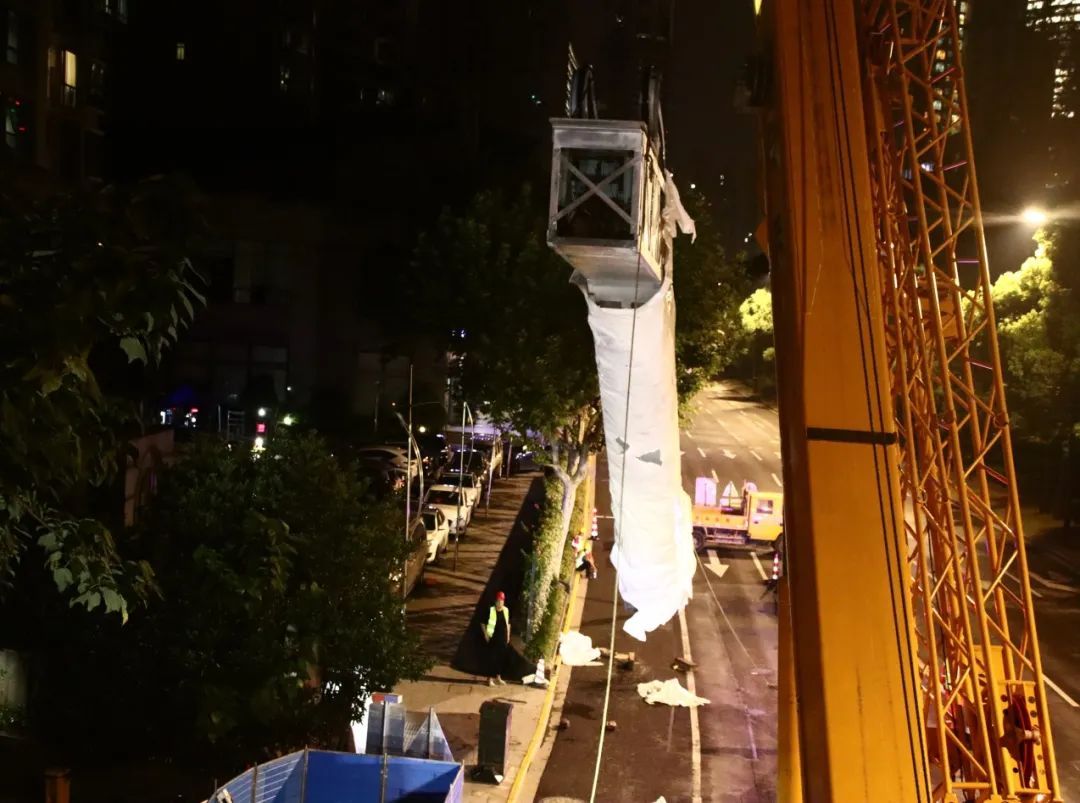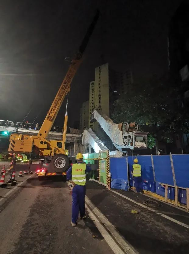 7月17日晚上23点,在徐汇区交警部门的大力配合下,工人们对肇嘉浜路两侧加装的两部自动扶梯进行吊装作业,经过近5个小时的紧张奋战,最终在7月18日凌晨4点前顺利完成了自动扶梯的主体吊装工作。