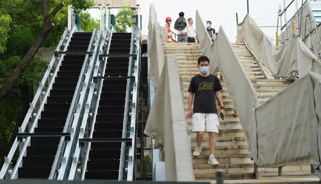 原是为行人过街提供便利的天桥,如今已经逐渐演变成大众心中的“过街难题”,尤其是对于行动不便的老人、残疾人、患高血压或心脏病的病人来说,天桥的楼梯犹如“天梯”,横亘在面前成为一道难以逾越的障碍。为了解决这一出行难题,目前,位于徐汇区的宛平南路天桥加梯工程正在紧锣密鼓地进行中,两部自动扶梯主体结构已于近日吊装完成,预计于八月下旬正式投入使用。