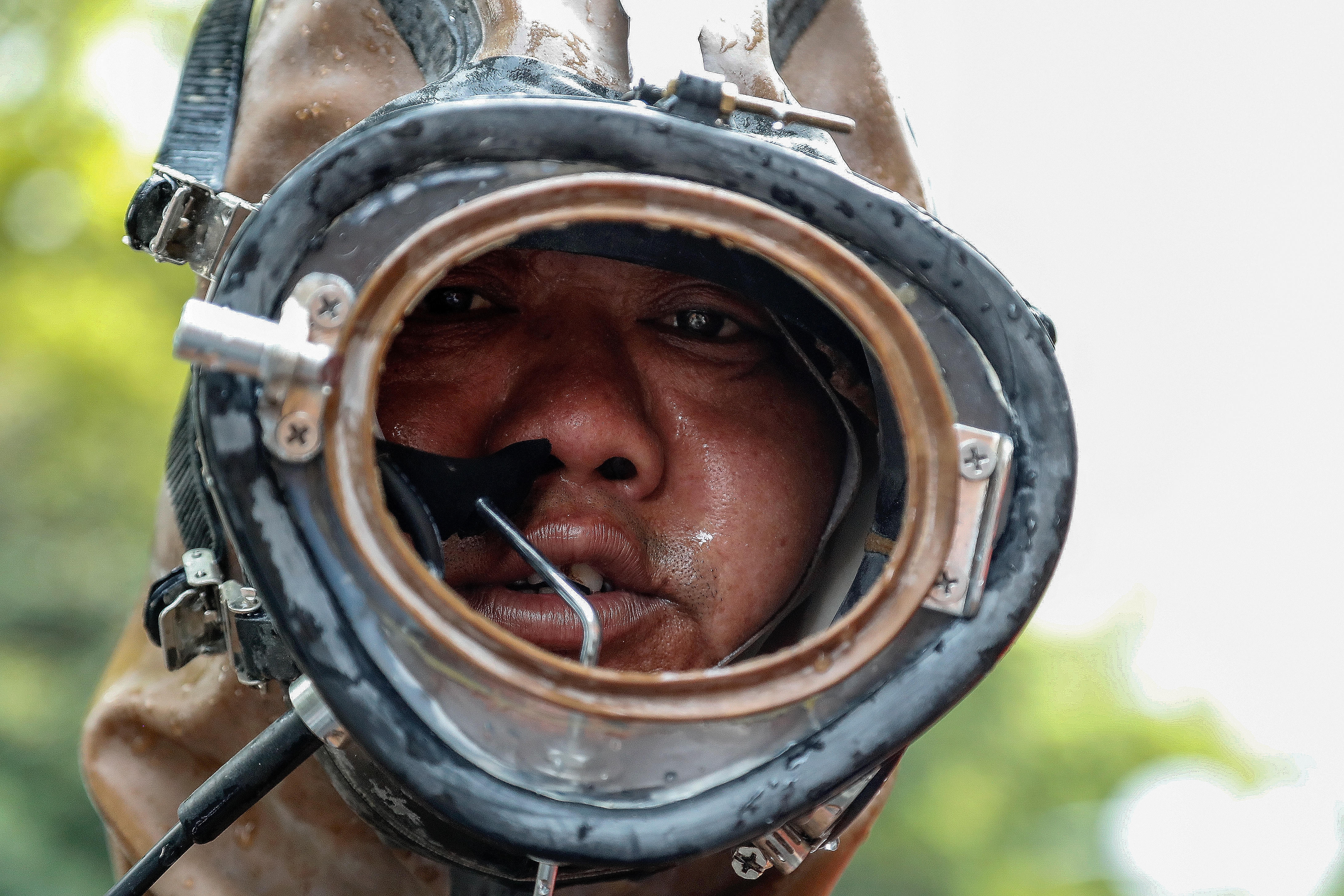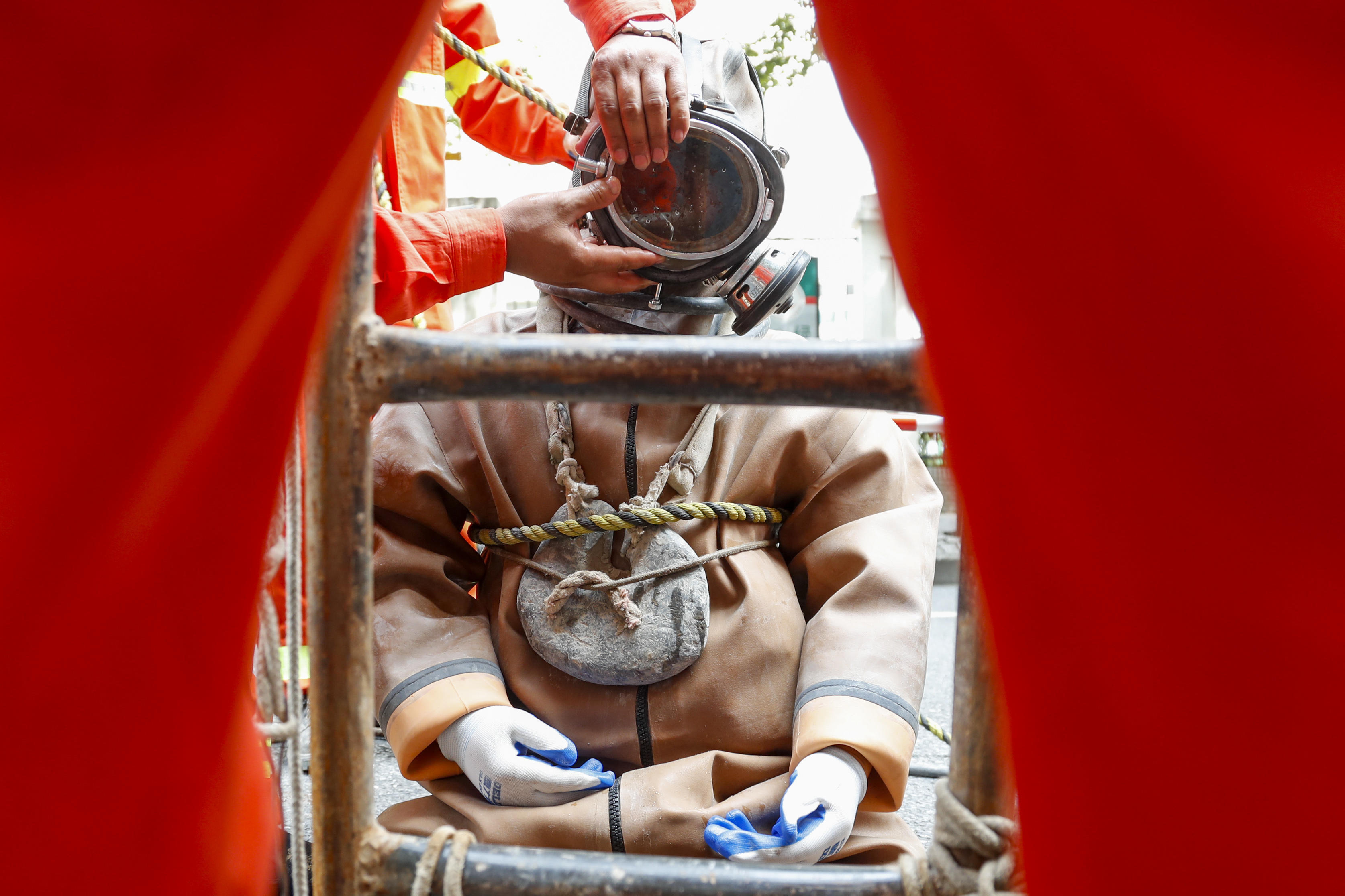 钟连华是卢湾市政下水道养护班组的一名潜水员,一干就是20年。每次下井作业,他需要穿上30多斤重的潜水服,背上40斤的铅饼,系上保险绳,再潜入数米深的污水井里。