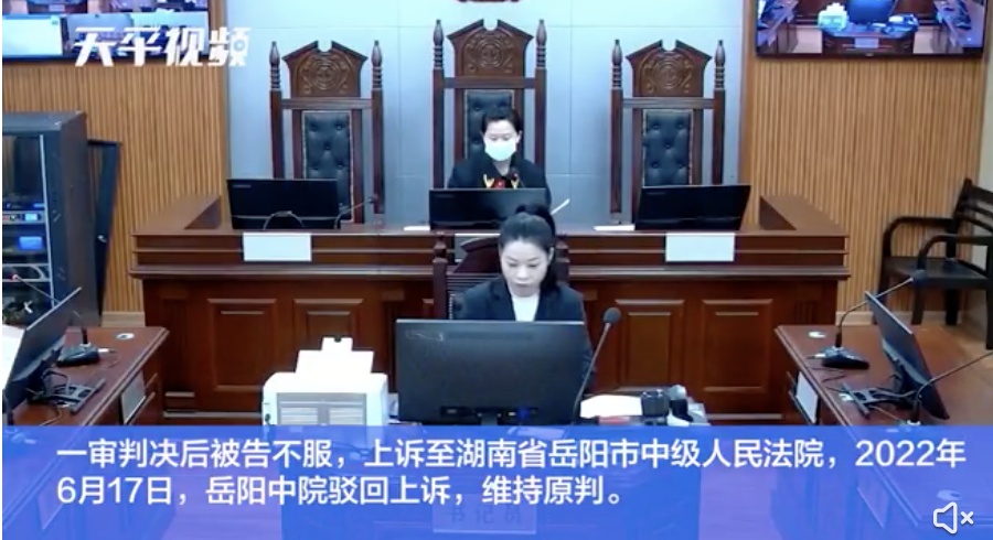 一审判决后被告不服,上诉至湖南省岳阳市中级人民法院,2022年6月17日,岳阳中院驳回上诉,维持原判。
